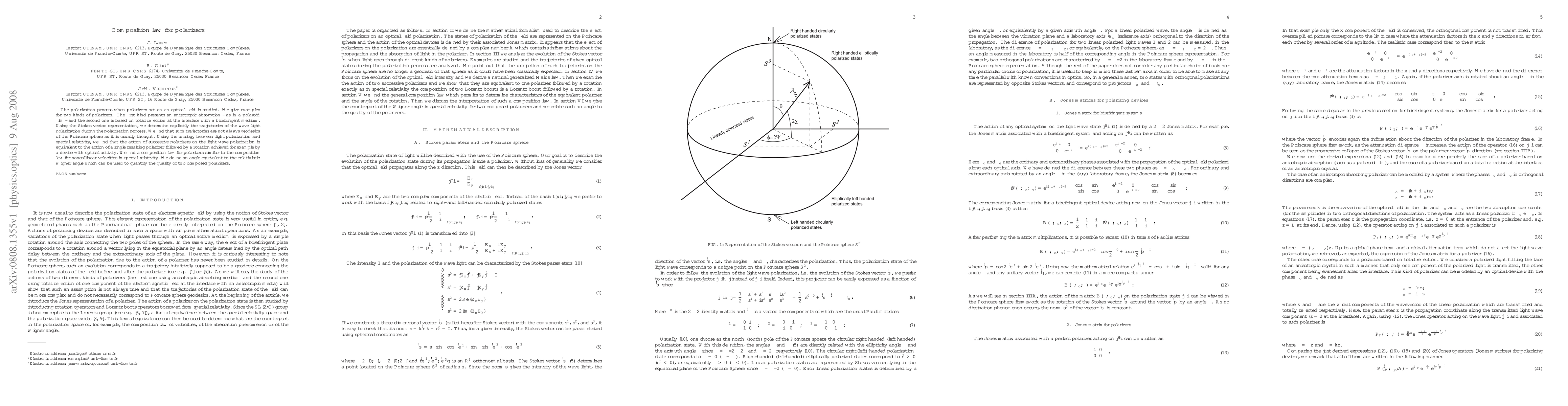 This paper studies the polarization process of optical fields through different types of polarizers, revealing that the resulting polarization trajectories are not always geodesics on the Poincar\'e sphere. It introduces a composition law for polarizers analogous to the composition law for noncollinear velocities in special relativity, defining an angle to quantify the quality of composed polarizers.