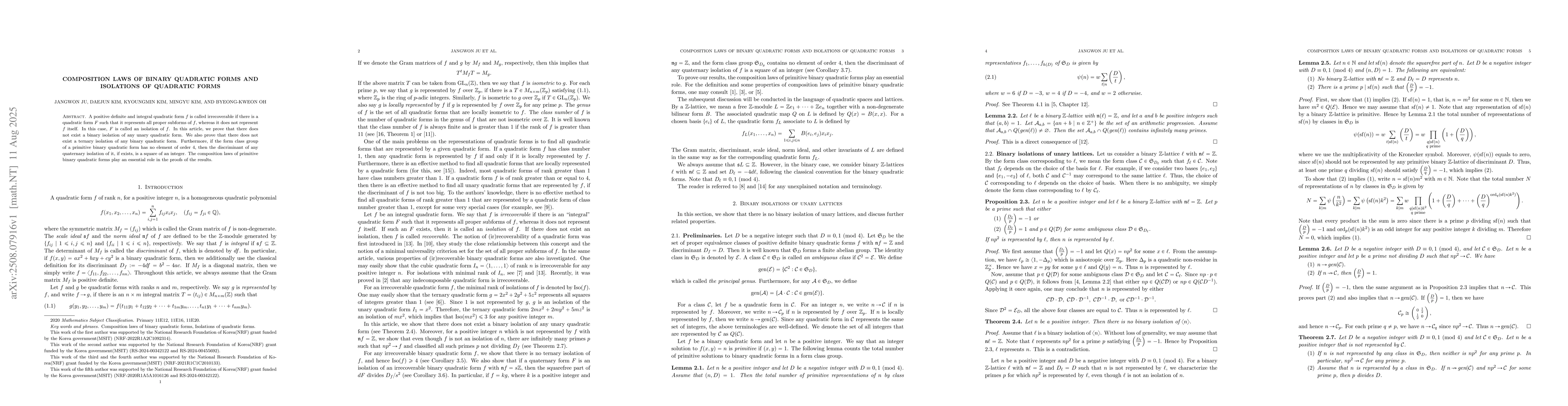 A positive definite and integral quadratic form $f$ is called irrecoverable if there is a quadratic form $F$ such that it represents all proper subforms of $f$, whereas it does not represent $f$ itself. In this case, $F$ is called an isolation of $f$. In this article, we prove that there does not exist a binary isolation of any unary quadratic form. We also prove that there does not exist a ternary isolation of any binary quadratic form. Furthermore, if the form class group of a primitive binary quadratic form has no element of order $4$, then the discriminant of any quaternary isolation of it, if exists, is a square of an integer. The composition laws of primitive binary quadratic forms play an essential role in the proofs of the results.