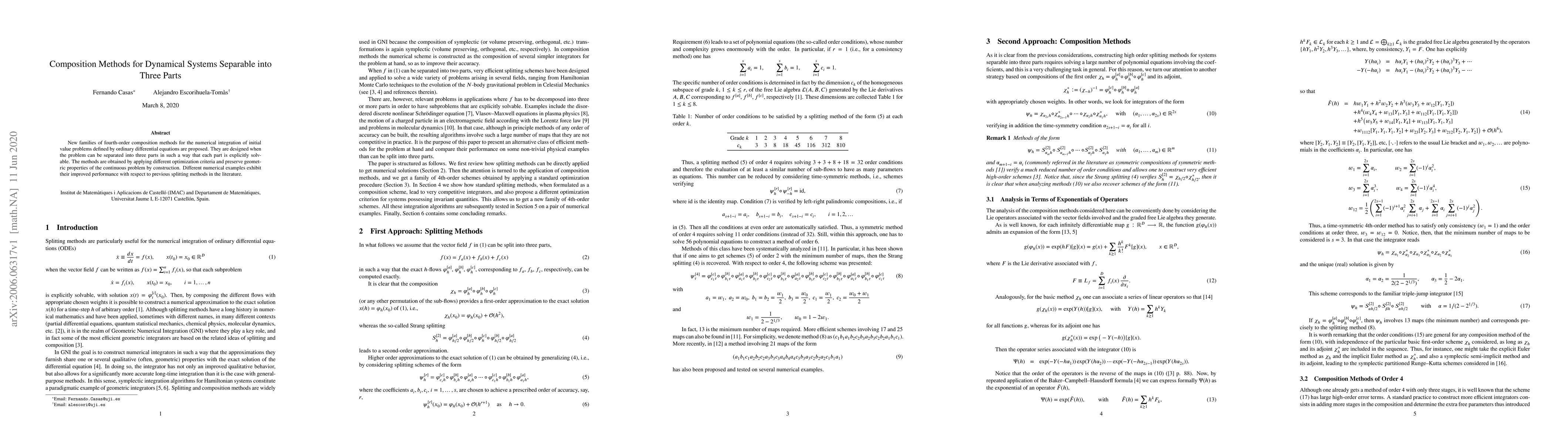 New fourth-order composition methods for solving initial value problems are proposed, designed to separate into three solvable parts, with improved performance over previous splitting methods.