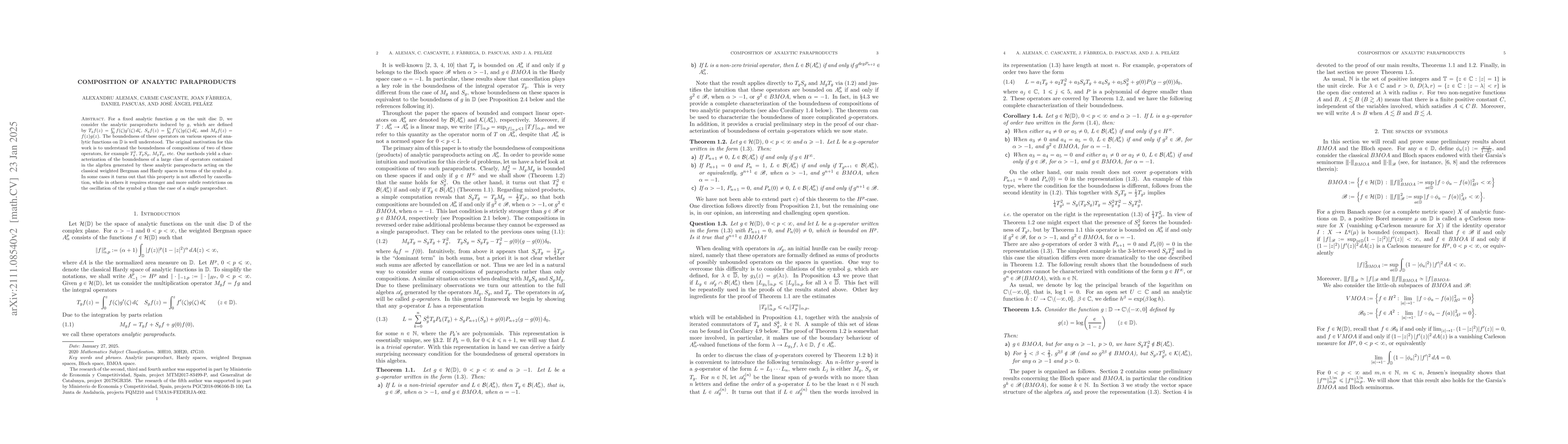 For a fixed analytic function $g$ on the unit disc $\mathbb{D}$, we consider the analytic paraproducts induced by $g$, which are defined by $T_gf(z)= \int_0^z f(\zeta)g'(\zeta)\,d\zeta$, $S_gf(z)= \int_0^z f'(\zeta)g(\zeta)\,d\zeta$, and $M_gf(z)= f(z)g(z)$. The boundedness of these operators on various spaces of analytic functions on $\mathbb{D}$ is well understood. The original motivation for this work is to understand the boundedness of compositions of two of these operators, for example $T_g^2, \,T_gS_g,\, M_gT_g$, etc. Our methods yield a characterization of the boundedness of a large class of operators contained in the algebra generated by these analytic paraproducts acting on the classical weighted Bergman and Hardy spaces in terms of the symbol $g$. In some cases it turns out that this property is not affected by cancellation, while in others it requires stronger and more subtle restrictions on the oscillation of the symbol $g$ than the case of a single paraproduct.