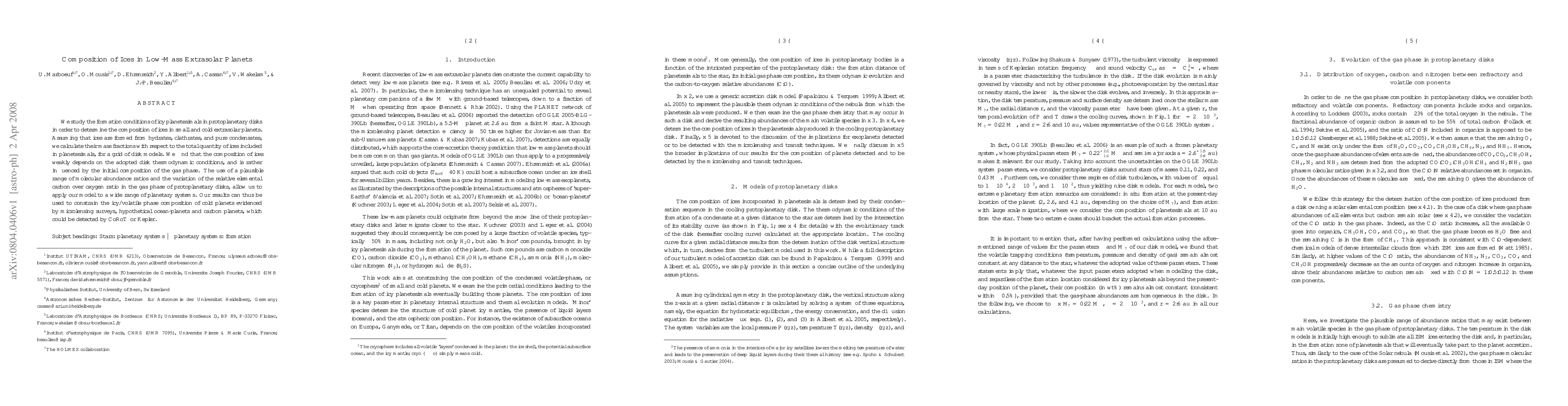 This research investigates the formation conditions of icy planetesimals in protoplanetary disks to determine the composition of ices in low-mass extrasolar planets. The study finds that the ice composition is primarily influenced by the initial gas phase composition rather than disk thermodynamic conditions, providing insights applicable to a wide range of planetary systems.