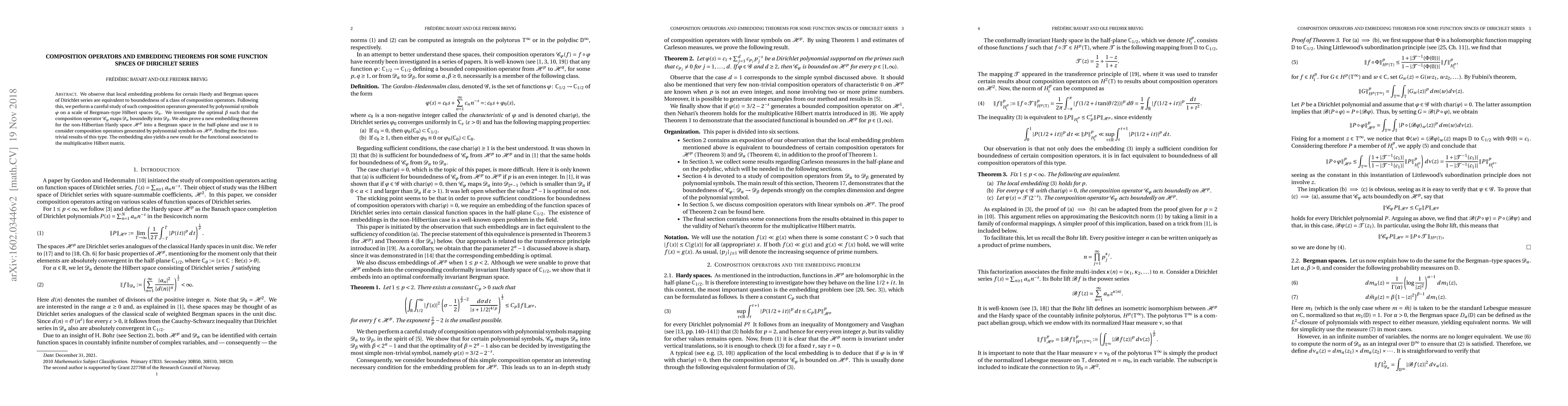 This paper explores the relationship between local embedding problems in Hardy and Bergman spaces of Dirichlet series and the boundedness of composition operators. It determines the optimal conditions for these operators and proves a new embedding theorem for Hardy spaces into Bergman spaces, yielding new insights on composition operators and results related to the multiplicative Hilbert matrix.