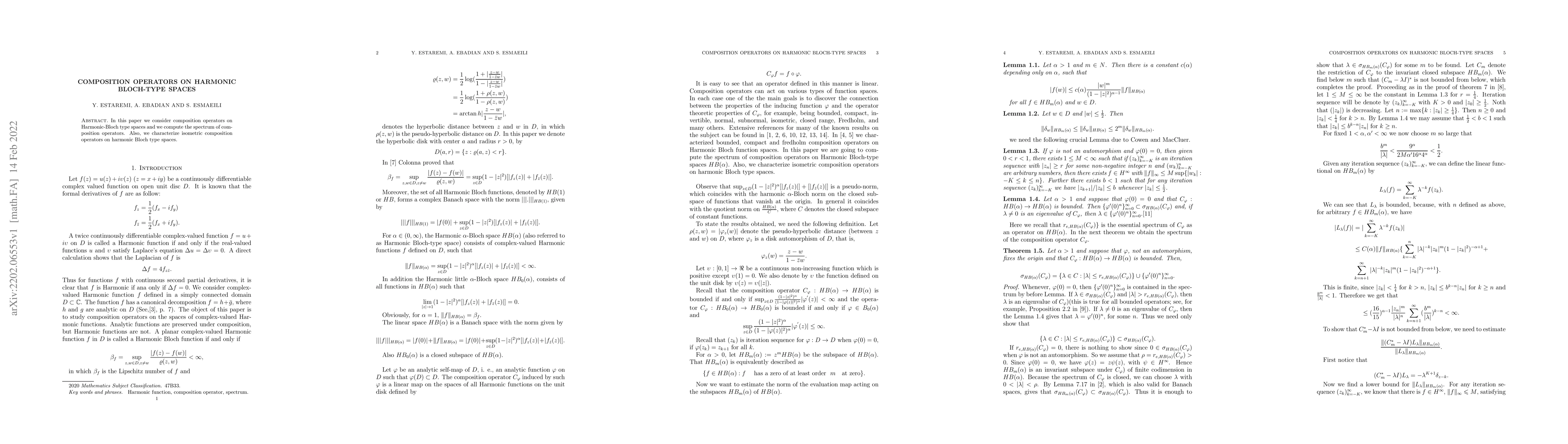 This paper studies composition operators acting on Harmonic-Bloch type spaces, determining their spectrum and characterizing isometric composition operators within this function space.