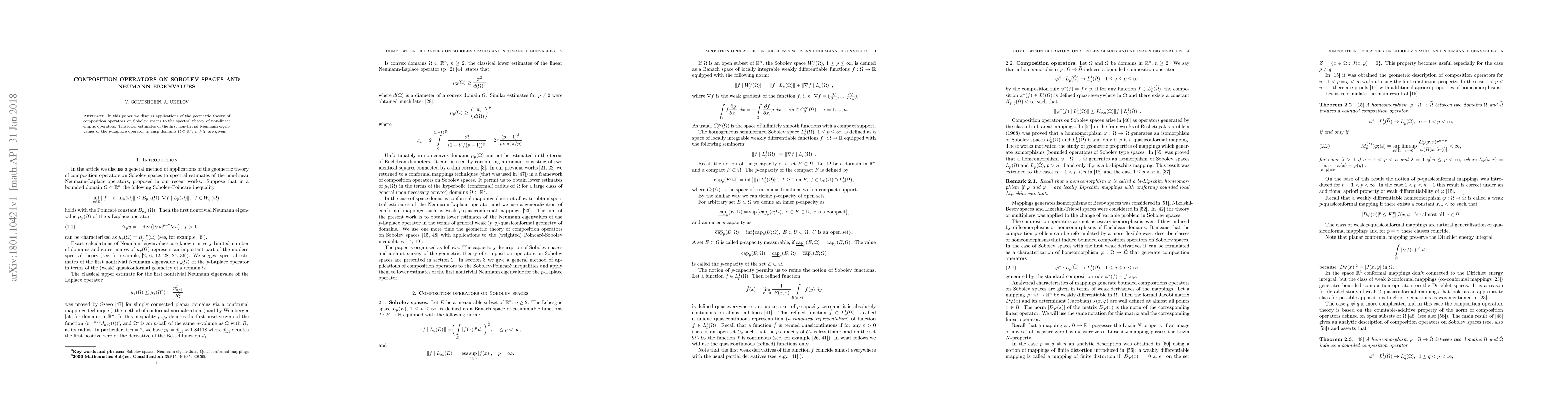 In this paper we discuss applications of the geometric theory of composition operators on Sobolev spaces to the spectral theory of non-linear elliptic operators. The lower estimates of the first non-trivial Neumann eigenvalues of the $p$-Laplace operator in cusp domains $\Omega\subset\mathbb R^n$, $n\geq 2$, are given.