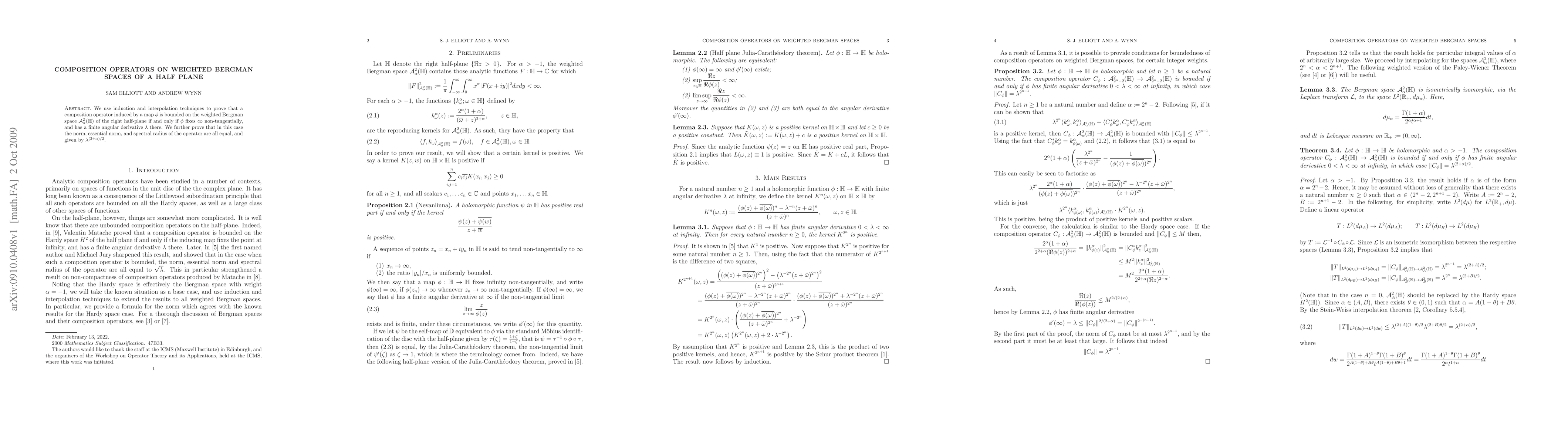 We use induction and interpolation techniques to prove that a composition operator induced by a map $\phi$ is bounded on the weighted Bergman space $\A^2_\alpha(\mathbb{H})$ of the right half-plane if and only if $\phi$ fixes $\infty$ non-tangentially, and has a finite angular derivative $\lambda$ there. We further prove that in this case the norm, essential norm, and spectral radius of the operator are all equal, and given by $\lambda^{(2+\alpha)/2}$.
