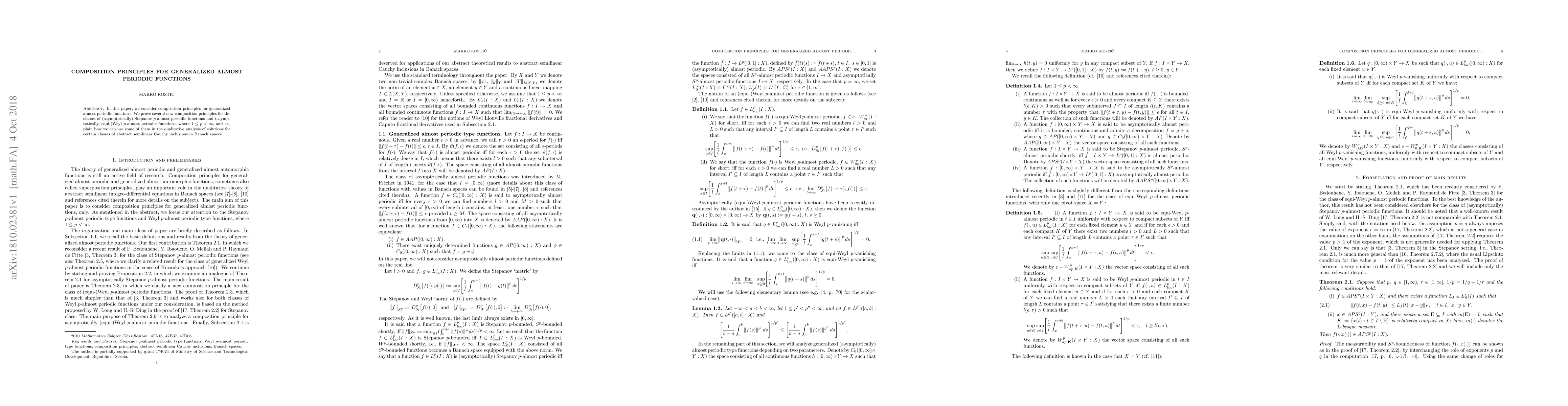 The paper introduces and proves novel composition principles for generalized almost periodic functions, extending existing results to new classes of functions and demonstrating their utility in analyzing abstract Cauchy problems.
