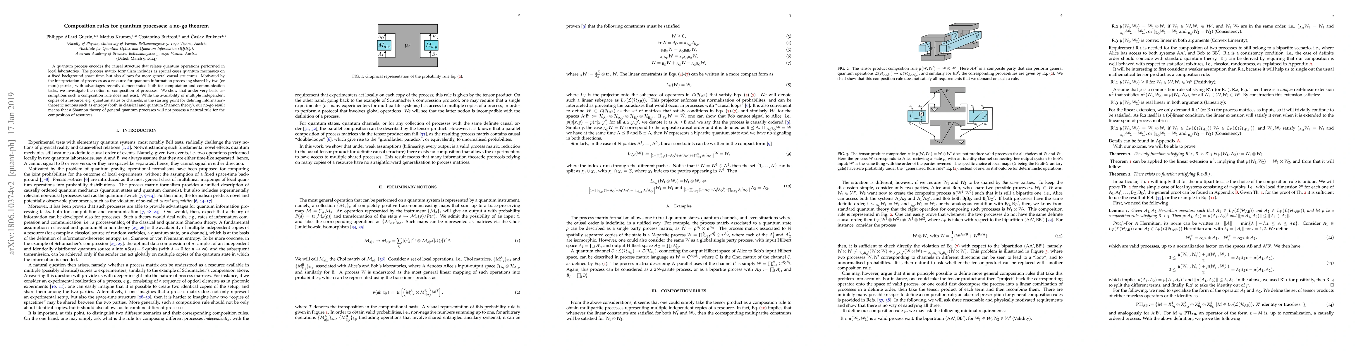 A quantum process encodes the causal structure that relates quantum operations performed in local laboratories. The process matrix formalism includes as special cases quantum mechanics on a fixed background space-time, but also allows for more general causal structures. Motivated by the interpretation of processes as a resource for quantum information processing shared by two (or more) parties, with advantages recently demonstrated both for computation and communication tasks, we investigate the notion of composition of processes. We show that under very basic assumptions such a composition rule does not exist. While the availability of multiple independent copies of a resource, e.g. quantum states or channels, is the starting point for defining information-theoretic notions such as entropy (both in classical and quantum Shannon theory), our no-go result means that a Shannon theory of general quantum processes will not possess a natural rule for the composition of resources.