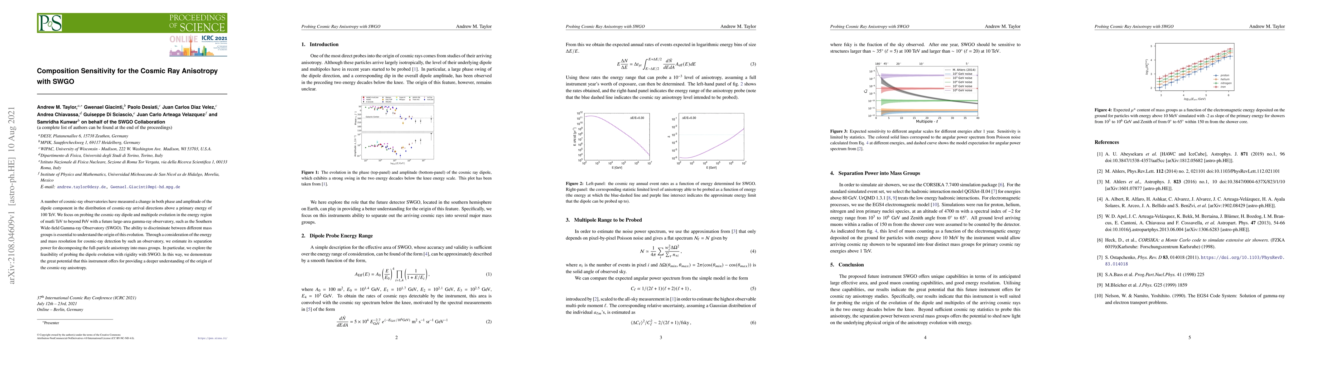 A number of cosmic-ray observatories have measured a change in both phase and amplitude of the dipole component in the distribution of cosmic-ray arrival directions above a primary energy of 100 TeV. We focus on probing the cosmic-ray dipole and multipole evolution in the energy region of mutli TeV to beyond PeV with a future large-area gamma-ray observatory, such as the Southern Wide-field Gamma-ray Observatory (SWGO). The ability to discriminate between different mass groups is essential to understand the origin of this evolution. Through a consideration of the energy and mass resolution for cosmic-ray detection by such an observatory, we estimate its separation power for decomposing the full-particle anisotropy into mass groups. In particular, we explore the feasibility of probing the dipole evolution with rigidity with SWGO. In this way, we demonstrate the great potential that this instrument offers for providing a deeper understanding of the origin of the cosmic-ray anisotropy.
