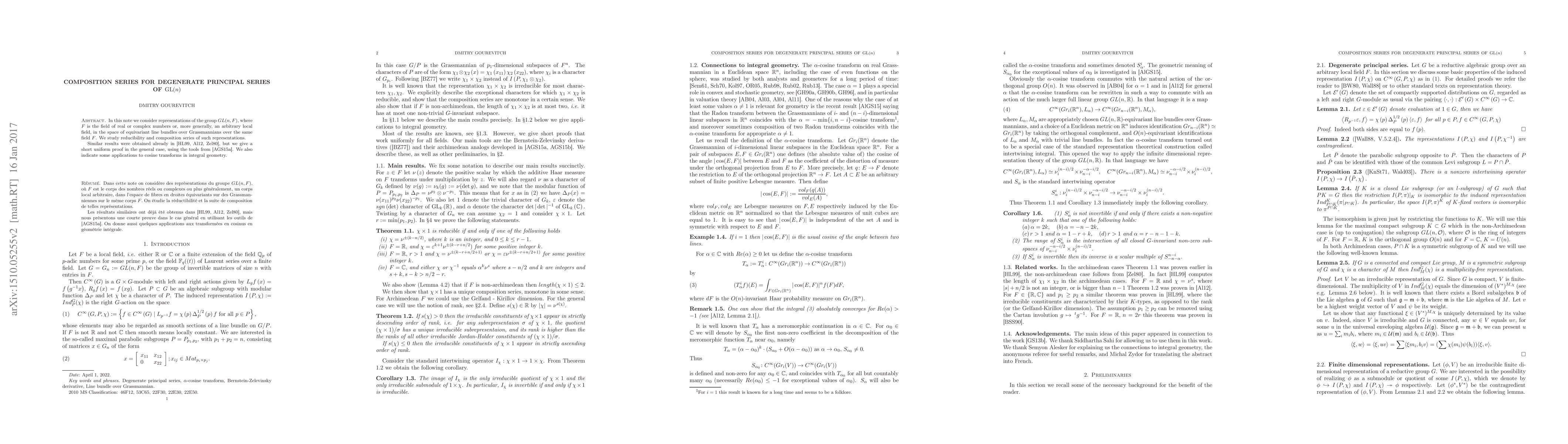 In this note we consider representations of the group GL(n,F), where F is the field of real or complex numbers or, more generally, an arbitrary local field, in the space of equivariant line bundles over Grassmannians over the same field F. We study reducibility and composition series of such representations. Similar results were obtained already in [HL99,Al12,Zel80], but we give a short uniform proof in the general case, using the tools from [AGS15a]. We also indicate some applications to cosine transforms in integral geometry.