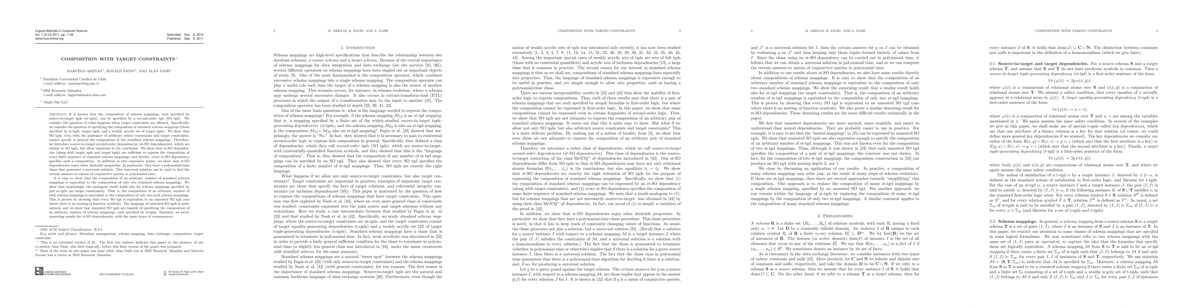 This paper explores the composition of schema mappings with target constraints, demonstrating that second-order tgds cannot generally express such compositions. It introduces source-to-target second-order dependencies (st-SO dependencies) that can express the composition of any finite sequence of standard schema mappings, with polynomial-time chase and query answering capabilities.