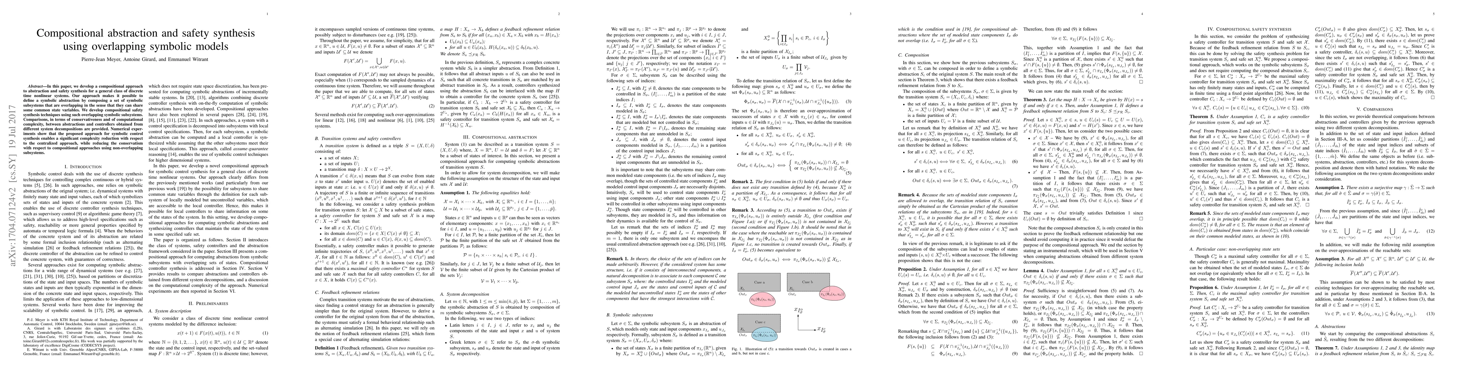 In this paper, we develop a compositional approach to abstraction and safety synthesis for a general class of discrete time nonlinear systems. Our approach makes it possible to define a symbolic abstraction by composing a set of symbolic subsystems that are overlapping in the sense that they can share some common state variables. We develop compositional safety synthesis techniques using such overlapping symbolic subsystems. Comparisons, in terms of conservativeness and of computational complexity, between abstractions and controllers obtained from different system decompositions are provided. Numerical experiments show that the proposed approach for symbolic control synthesis enables a significant complexity reduction with respect to the centralized approach, while reducing the conservatism with respect to compositional approaches using non-overlapping subsystems.