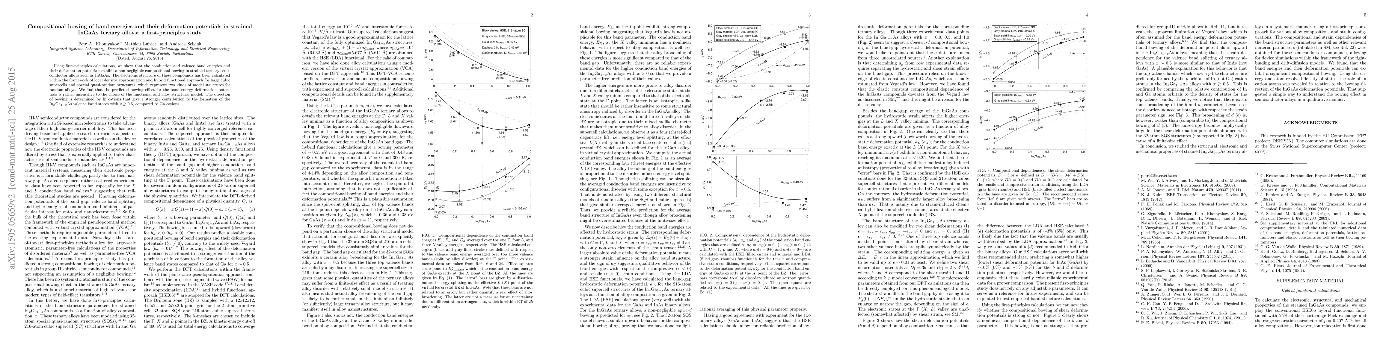 This paper uses first-principles calculations to demonstrate that conduction and valence band energies in strained InGaAs alloys exhibit significant compositional bowing. The study finds that the bowing effect is robust across different functional and structural models, with In cations playing a dominant role in the formation of the valence band states.