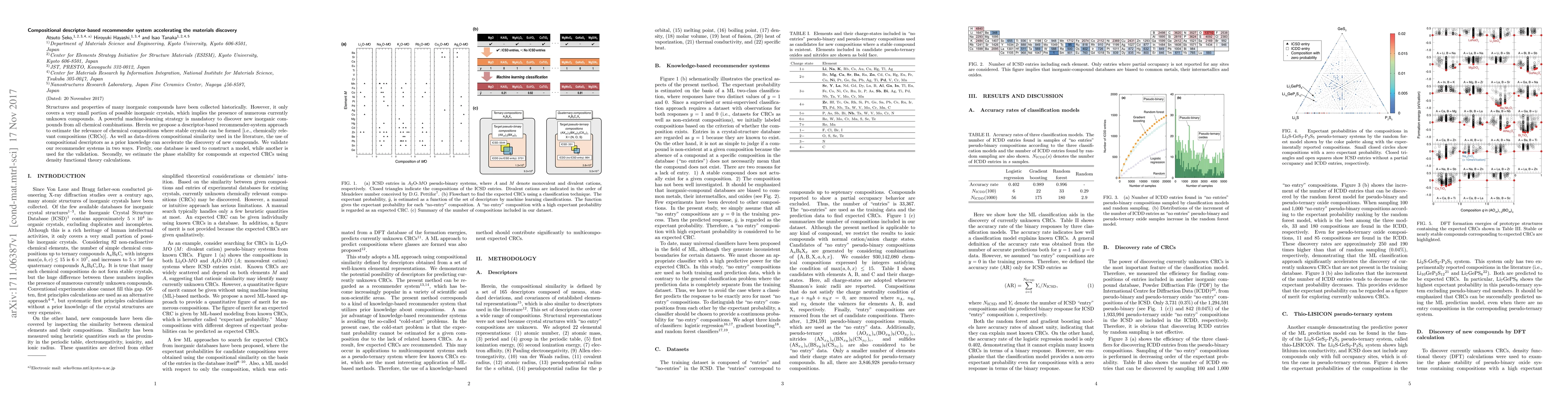 This paper proposes a descriptor-based recommender system to accelerate the discovery of new inorganic compounds by estimating the relevance of chemically relevant compositions (CRCs). The system leverages compositional descriptors and validates its predictions using both cross-database testing and density functional theory calculations.