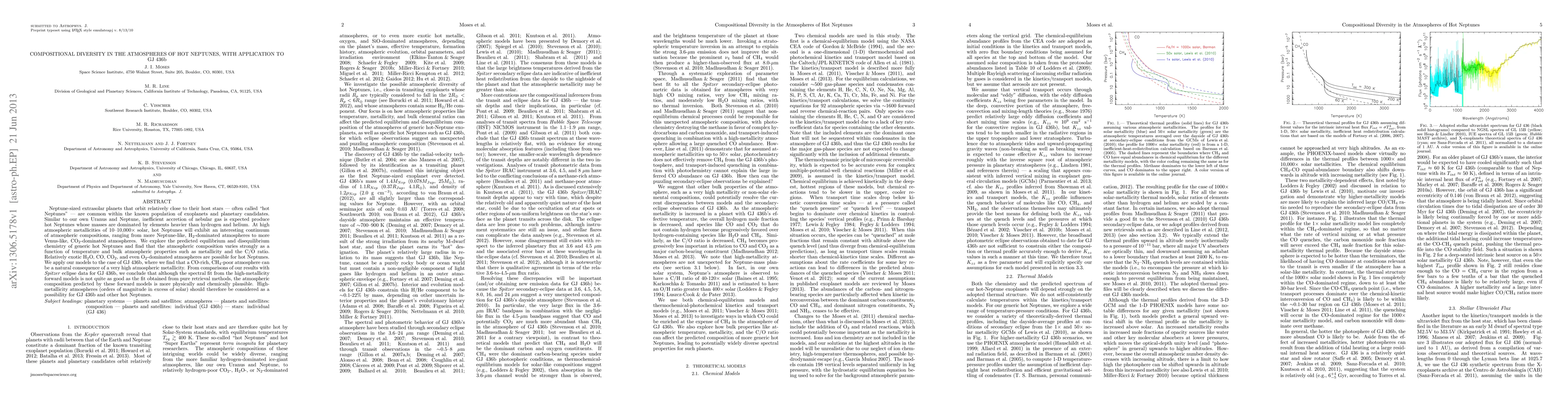 The paper presents a comprehensive analysis of the atmospheric compositions of hot Neptunes, applying equilibrium and disequilibrium chemistry models, and validating the findings with Spitzer eclipse data.