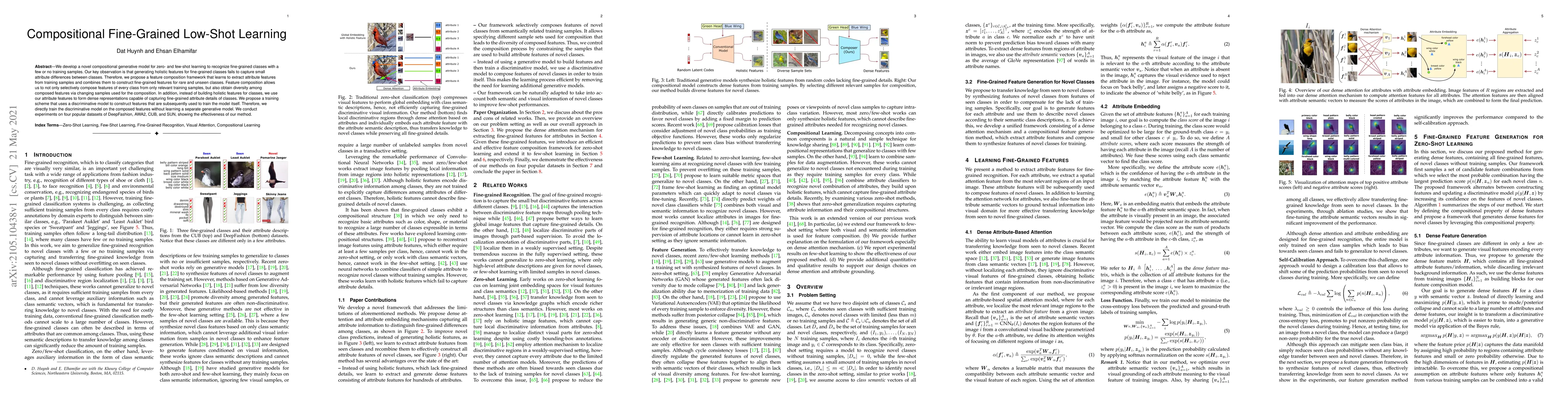 This paper introduces a compositional generative model for zero- and few-shot learning to recognize fine-grained classes. It proposes a feature composition framework that extracts and combines attribute features from training samples to create fine-grained features, demonstrating effectiveness on multiple datasets.