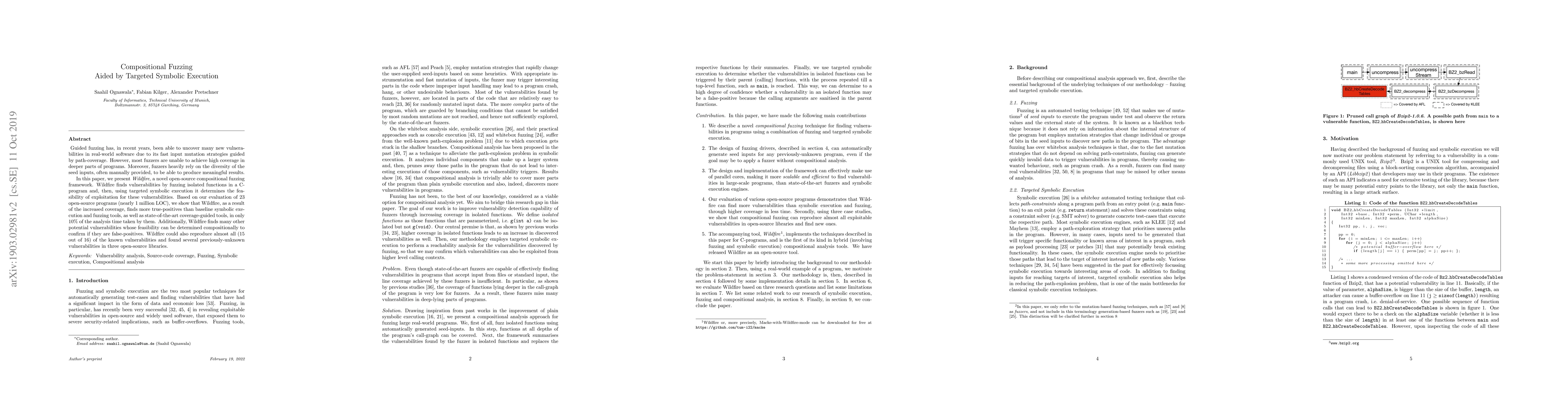 The development of Wildfire, an open-source compositional analysis framework that integrates fuzzing and symbolic execution for finding vulnerabilities in isolated functions.