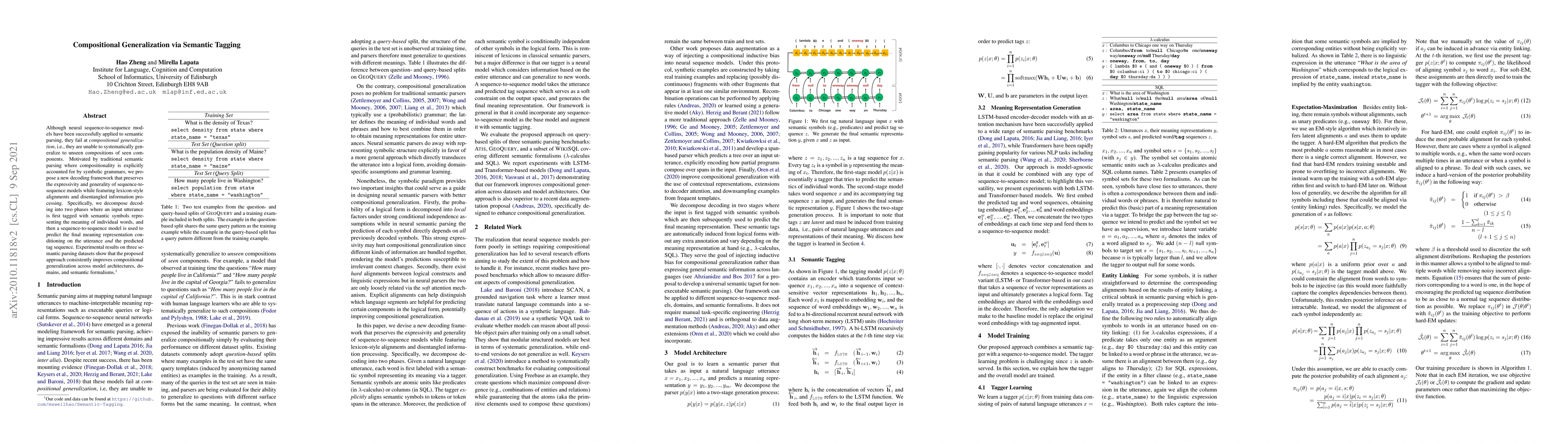 This paper proposes a decoding framework for neural sequence-to-sequence models that enhances compositional generalization through semantic tagging, aligning with traditional symbolic grammars. Experimental results demonstrate consistent improvements across various datasets and model architectures.