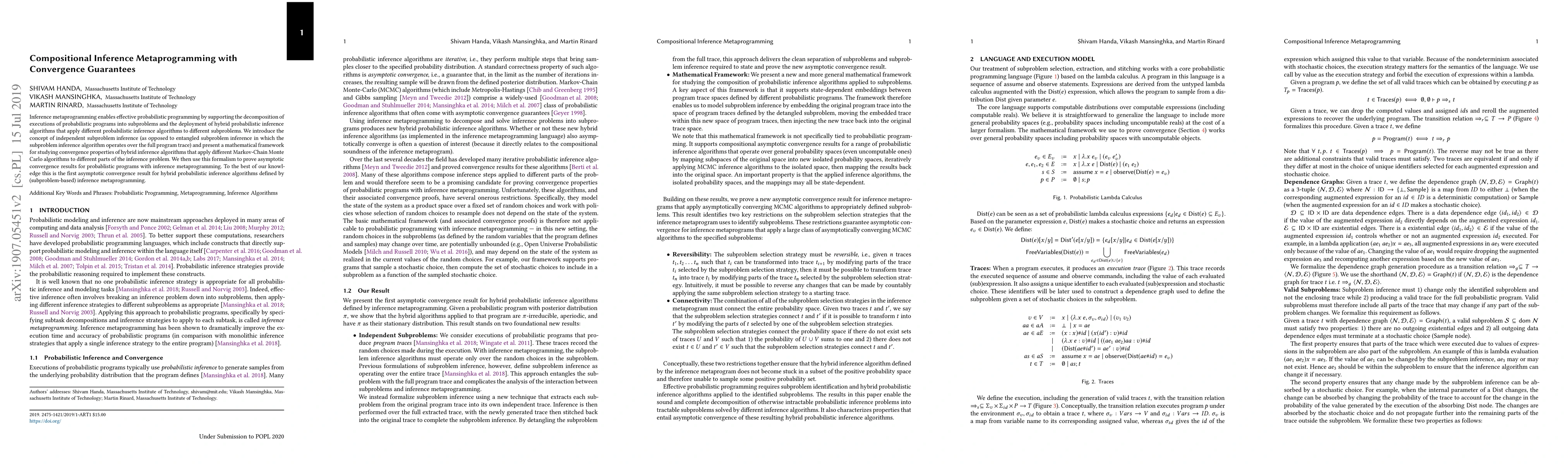 This paper introduces independent subproblem inference in metaprogramming for probabilistic programming, presenting a mathematical framework for hybrid inference algorithms. It proves asymptotic convergence results for such algorithms, marking the first convergence guarantees for hybrid inference defined by inference metaprogramming.