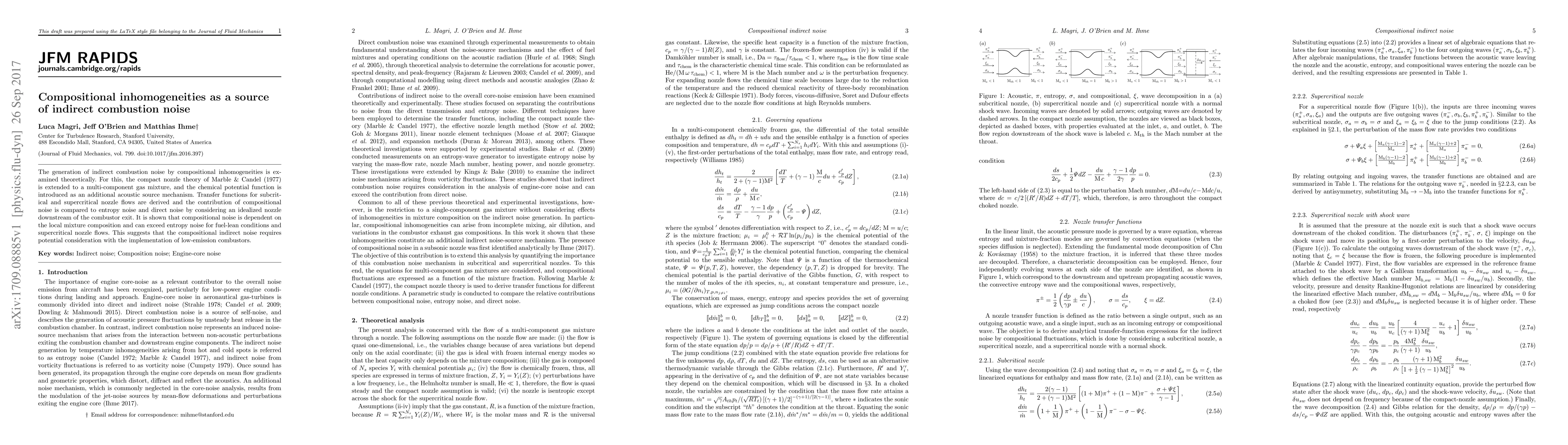 Compositional inhomogeneities in gas mixtures can generate noise during combustion, potentially exceeding entropy noise for lean conditions and supercritical flows. This finding highlights the importance of considering compositional indirect noise in low-emission combustor designs.