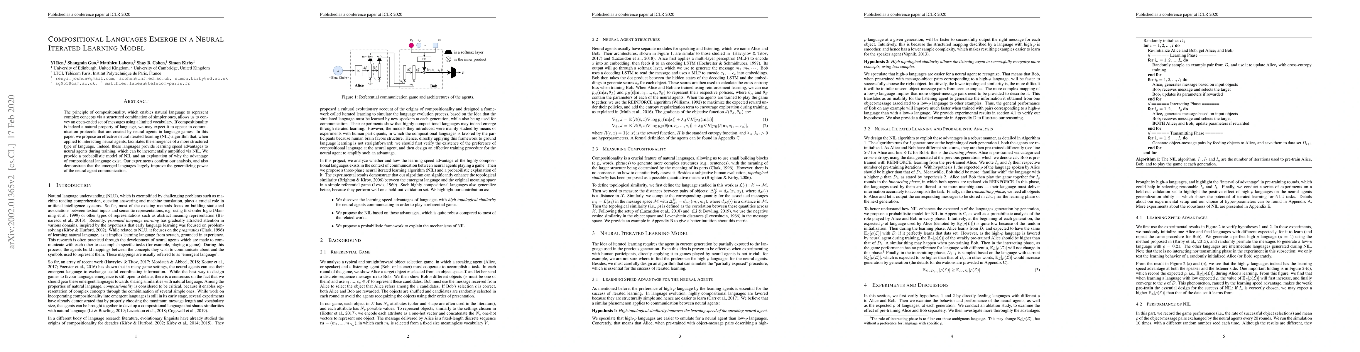 This paper proposes a neural iterated learning algorithm that fosters the emergence of compositional languages among interacting neural agents, enhancing their communication efficiency and generalization capabilities. The study demonstrates that these languages provide significant learning speed advantages and improved message representation through structured combinations of simpler elements.