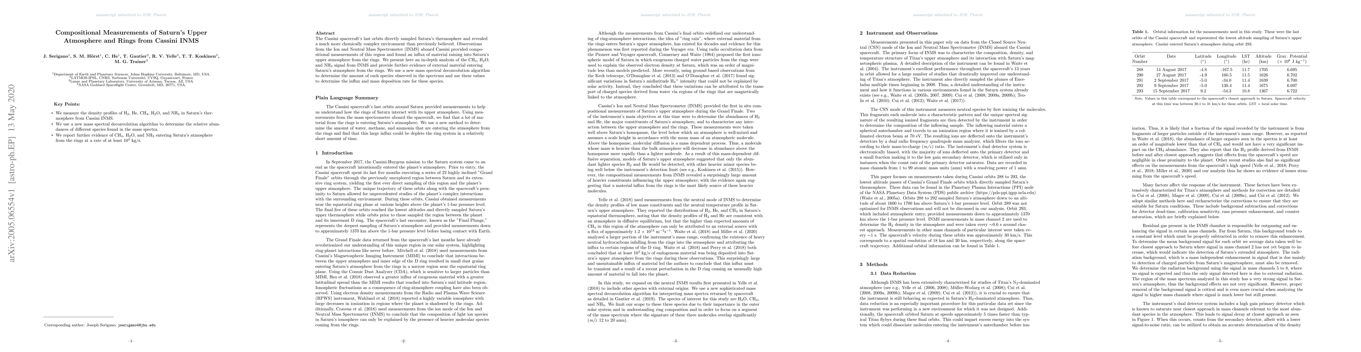 The Cassini spacecraft's INMS instrument detected a chemically complex Saturnian thermosphere, revealing an influx of CH$_4$, H$_2$O, and NH$_3$ from the rings. A new deconvolution algorithm was used to quantify the mass deposition rate of these materials.
