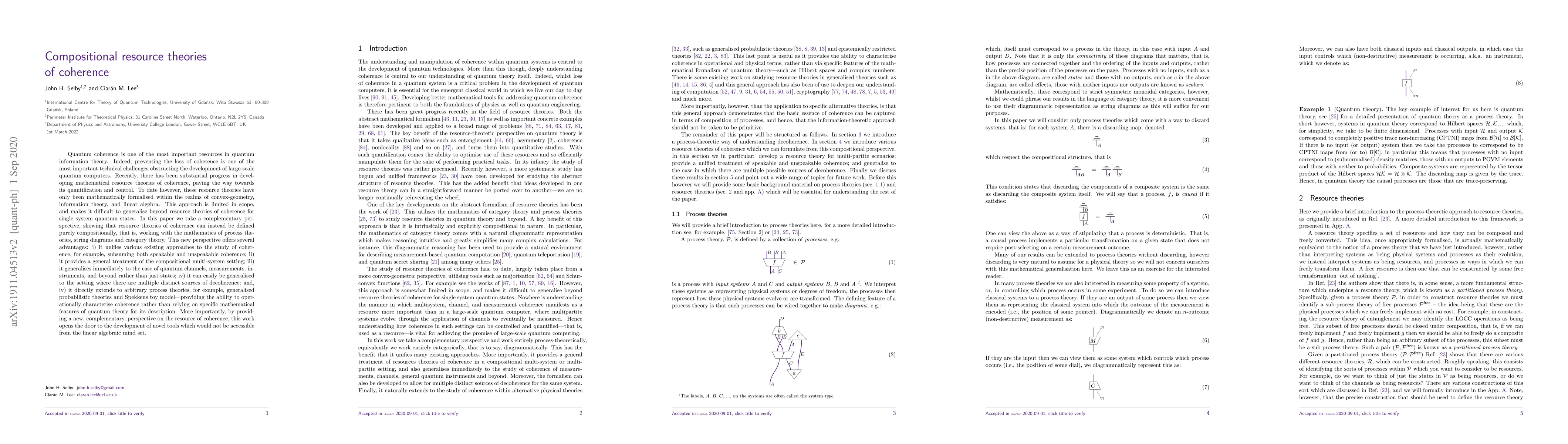 Quantum coherence is one of the most important resources in quantum information. Indeed, preventing the loss of coherence is one of the most important technical challenges obstructing the development of large-scale quantum computers. Recently, there has been substantial progress in developing mathematical resource theories of coherence, paving the way towards its quantification and control. To date however, these resource theories have only been mathematically formalised within the realms of convex-geometry, information theory, and linear algebra. This approach is limited in scope, and makes it difficult to go beyond resource theories of coherence for single system quantum states. In this paper we take a complementary perspective, showing that resource theories of coherence can instead be defined purely compositionally, that is, working with the mathematics of process theories, string diagrams and category theory. This new perspective offers several advantages: i) it unifies various existing approaches to the study of coherence, for example, subsuming both speakable and unspeakable coherence; ii) it provides a general treatment of the compositional multi-system setting; iii) it generalises immediately to the case of quantum channels, measurements, instruments, and beyond; iv) it can easily be generalised to the setting where there are multiple distinct sources of decoherence; and, iv) it directly extends to arbitrary process theories, for example, generalised probabilistic theories and Spekkens toy model--providing the ability to operationally characterise coherence rather than relying on specific mathematical features of quantum theory for its description. More importantly, by providing a new, complementary, perspective on the resource of coherence, this work opens the door to the development of novel tools which would not be accessible from the linear algebraic mind set.