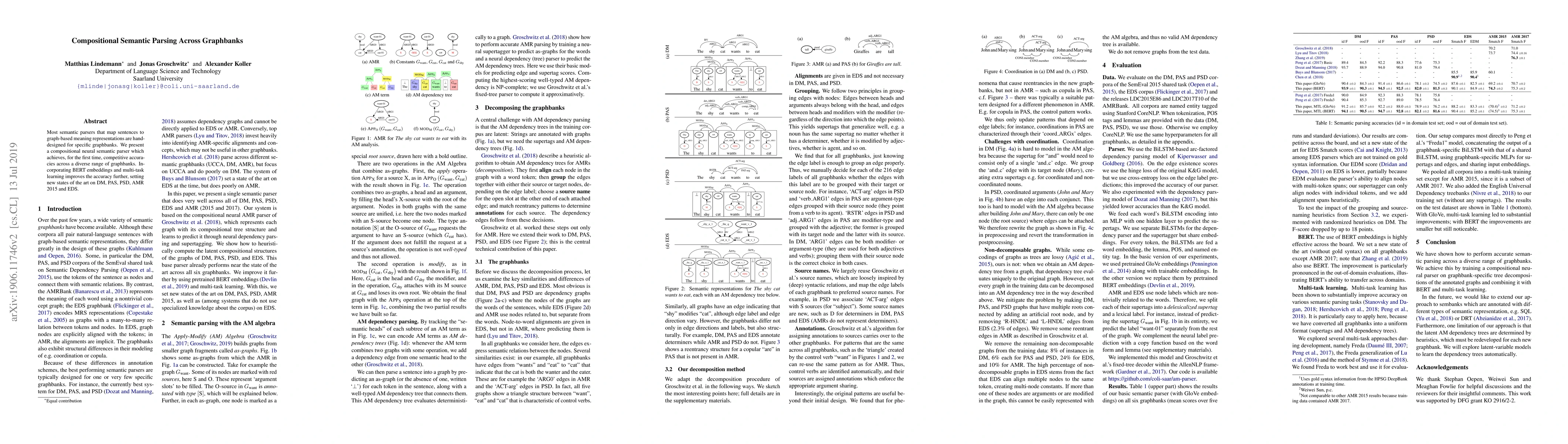 Most semantic parsers that map sentences to graph-based meaning representations are hand-designed for specific graphbanks. We present a compositional neural semantic parser which achieves, for the first time, competitive accuracies across a diverse range of graphbanks. Incorporating BERT embeddings and multi-task learning improves the accuracy further, setting new states of the art on DM, PAS, PSD, AMR 2015 and EDS.
