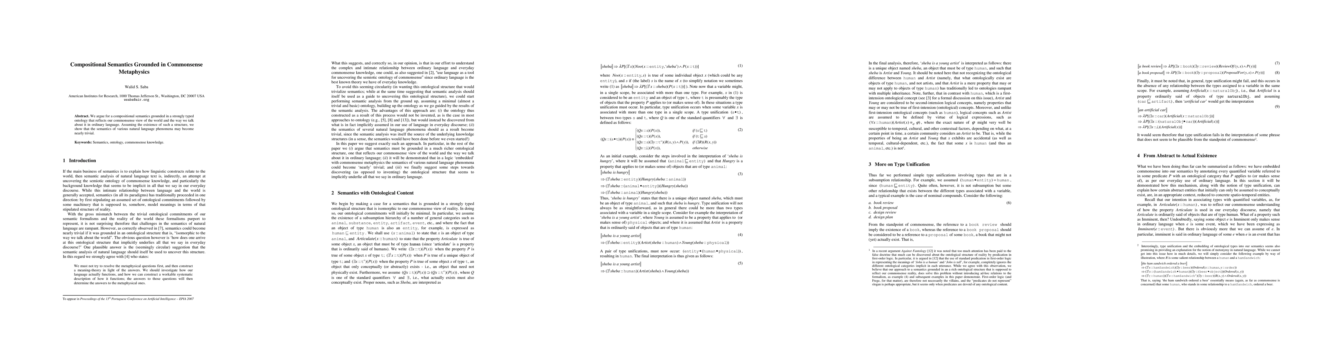 This paper proposes a compositional semantics framework based on a strongly typed ontology that mirrors commonsense metaphysics, demonstrating that this approach simplifies the semantics of various natural language phenomena.