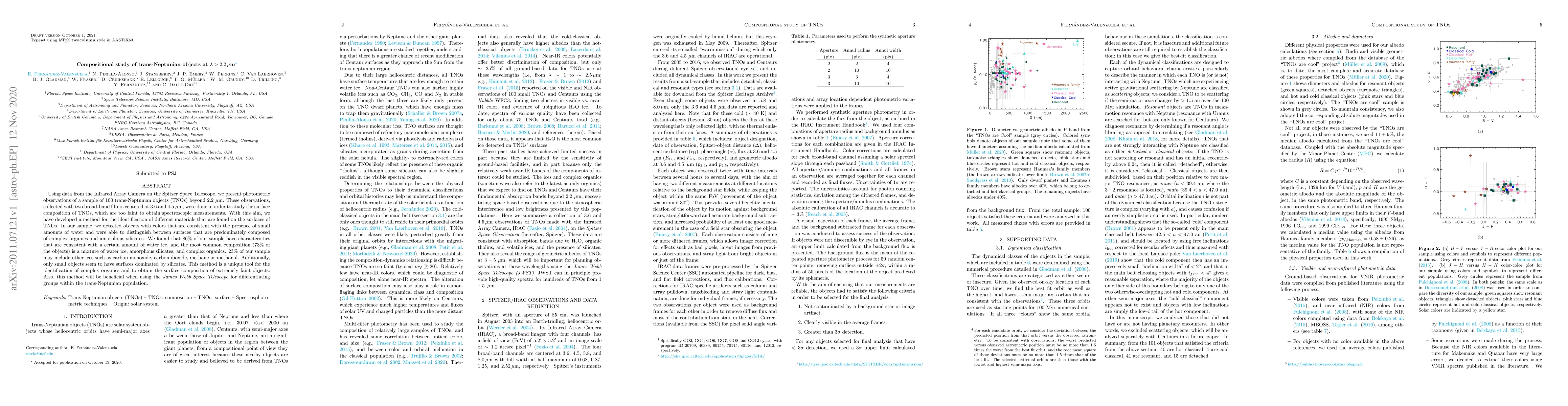 A study of 100 trans-Neptunian objects found that most have surfaces with water ice, complex organics, and amorphous silicates, while smaller objects have silicate-dominated surfaces.