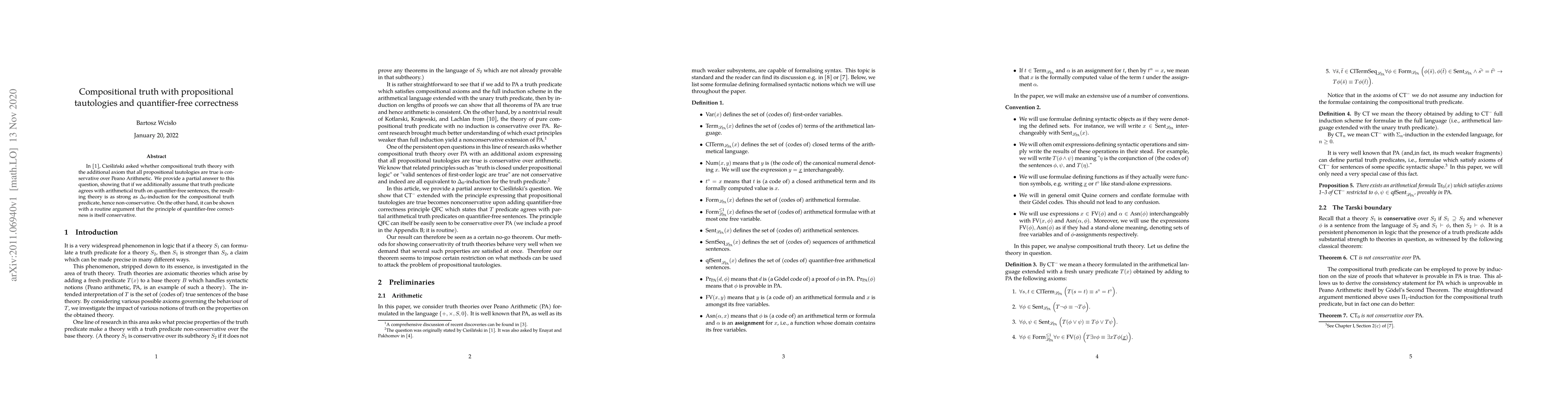 Cie\'sli\'nski asked whether compositional truth theory with the additional axiom that all propositional tautologies are true is conservative over Peano Arithmetic. We provide a partial answer to this question, showing that if we additionally assume that truth predicate agrees with arithmetical truth on quantifier-free sentences, the resulting theory is as strong as $\Delta_0$-induction for the compositional truth predicate, hence non-conservative. On the other hand, it can be shown with a routine argument that the principle of quantifier-free correctness is itself conservative.