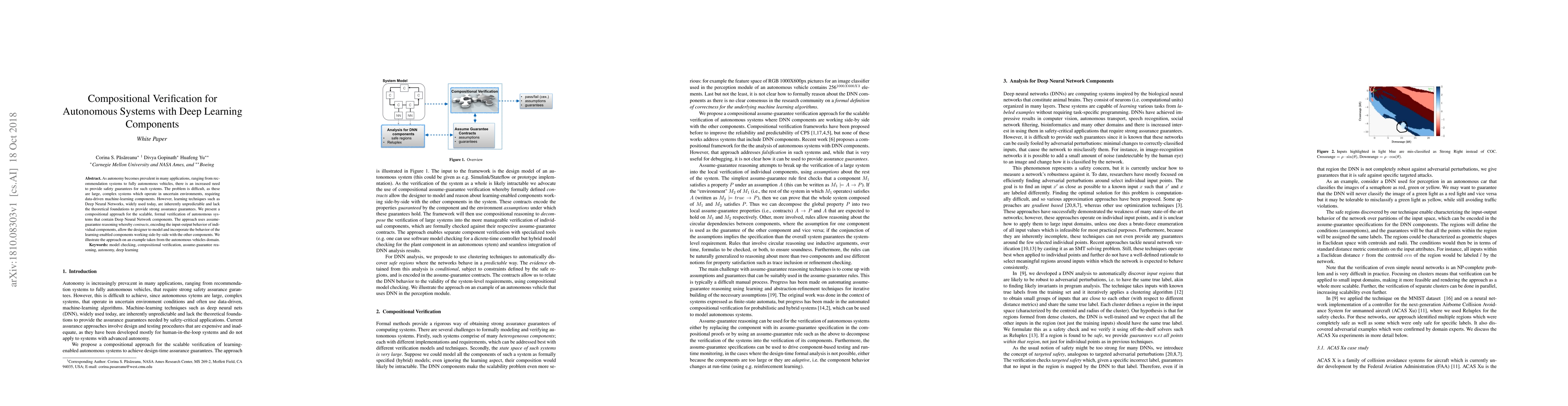 This paper proposes a compositional verification method for autonomous systems incorporating Deep Neural Networks, using assume-guarantee reasoning with contracts to model individual components' behavior, ensuring safety in complex, uncertain environments. The approach is demonstrated through an example from autonomous vehicle systems.