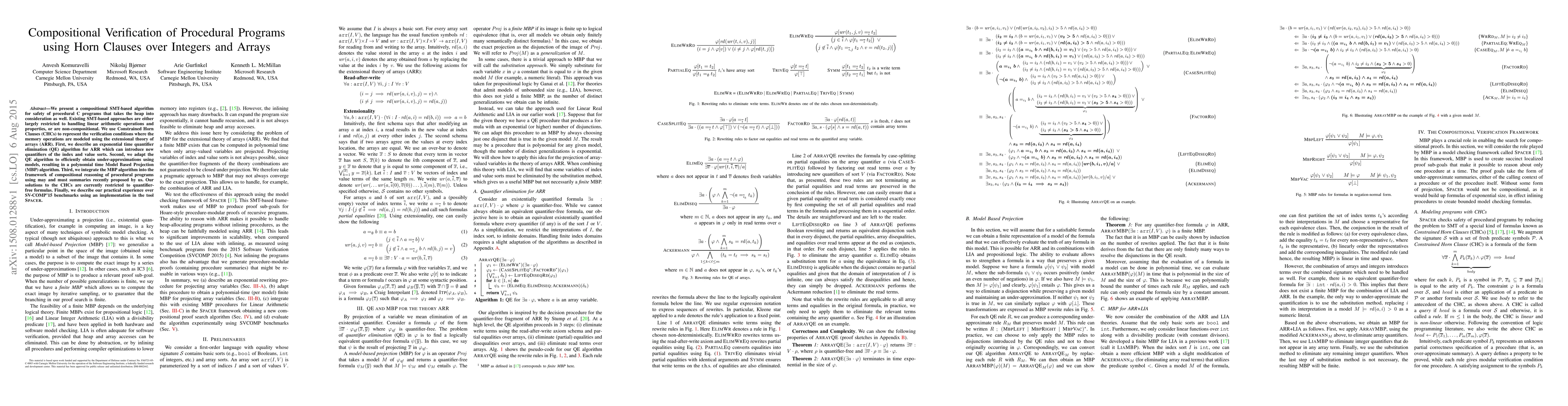 A new compositional verification method for procedural C programs uses Constrained Horn Clauses to consider heap operations, achieving polynomial time with under-approximations and extending to quantifier-free formulas.