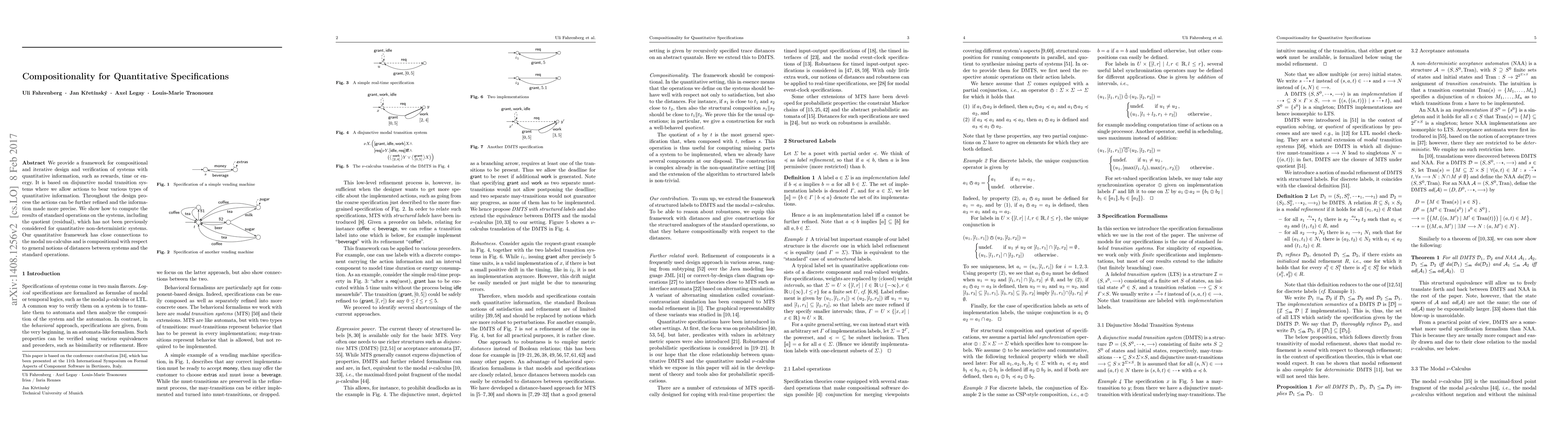 This paper presents a framework for the compositional and iterative design of systems with quantitative specifications, utilizing disjunctive modal transition systems. It introduces the ability to refine actions and compute results of standard operations, including the residual, and connects the approach to the modal nu-calculus.