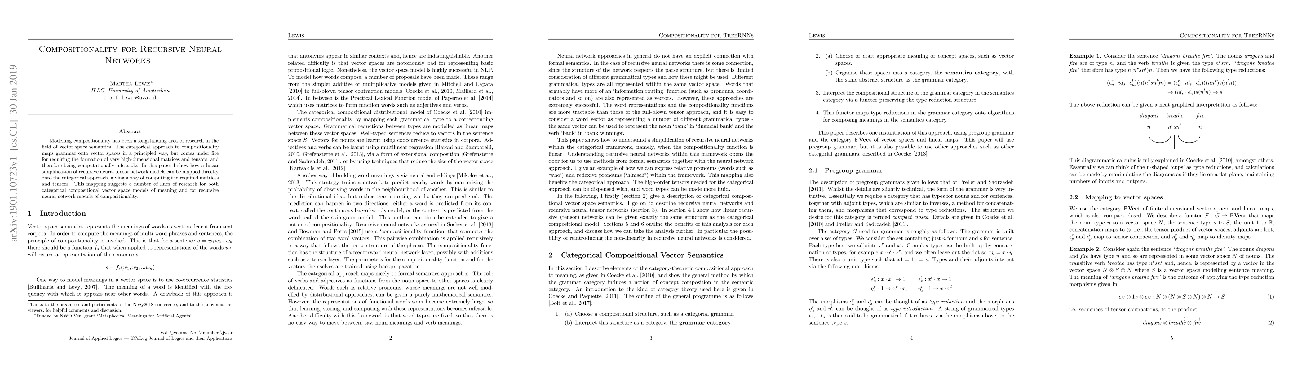 This paper proposes a linear simplification of recursive neural tensor networks that aligns with the categorical approach to compositionality, enabling computationally feasible computation of high-dimensional matrices and tensors. This method opens new research avenues for both compositional vector space semantics and neural network models.
