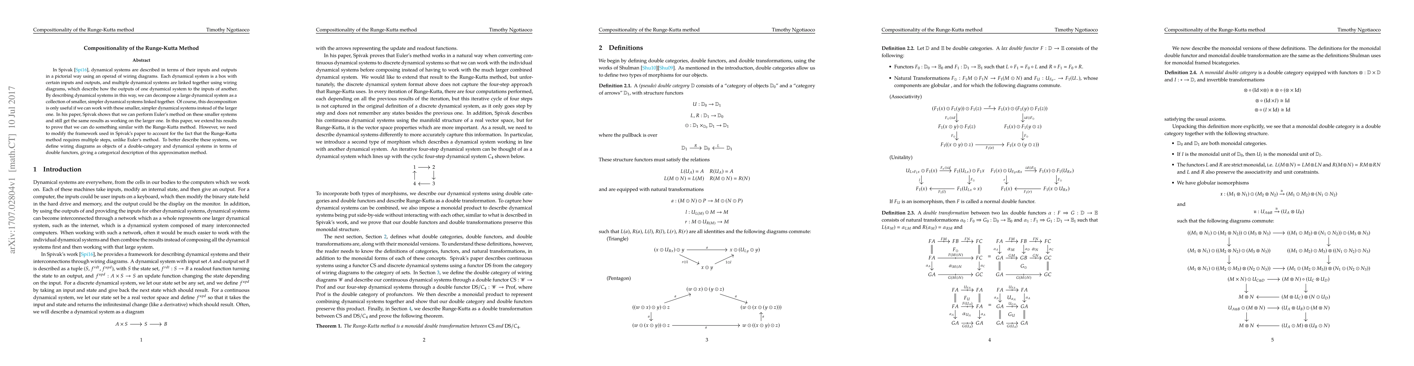 In Spivak's work, dynamical systems are described in terms of their inputs and outputs in a pictorial way using an operad of wiring diagrams. Each dynamical system is a box with certain inputs and outputs, and multiple dynamical systems are linked together using wiring diagrams, which describe how the outputs of one dynamical system to the inputs of another. By describing dynamical systems in this way, we can decompose a large dynamical system as a collection of smaller, simpler dynamical systems linked together. Of course, this decomposition is only useful if we can work with these smaller, simpler dynamical systems instead of the larger one. In his paper, Spivak shows that we can perform Euler's method on these smaller systems and still get the same results as working on the larger one. In this paper, we extend his results to prove that we can do something similar with the Runge-Kutta method. However, we need to modify the framework used in Spivak's paper to account for the fact that the Runge-Kutta method requires multiple steps, unlike Euler's method. To better describe these systems, we define wiring diagrams as objects of a double-category and dynamical systems in terms of double functors, giving a categorical description of this approximation method.