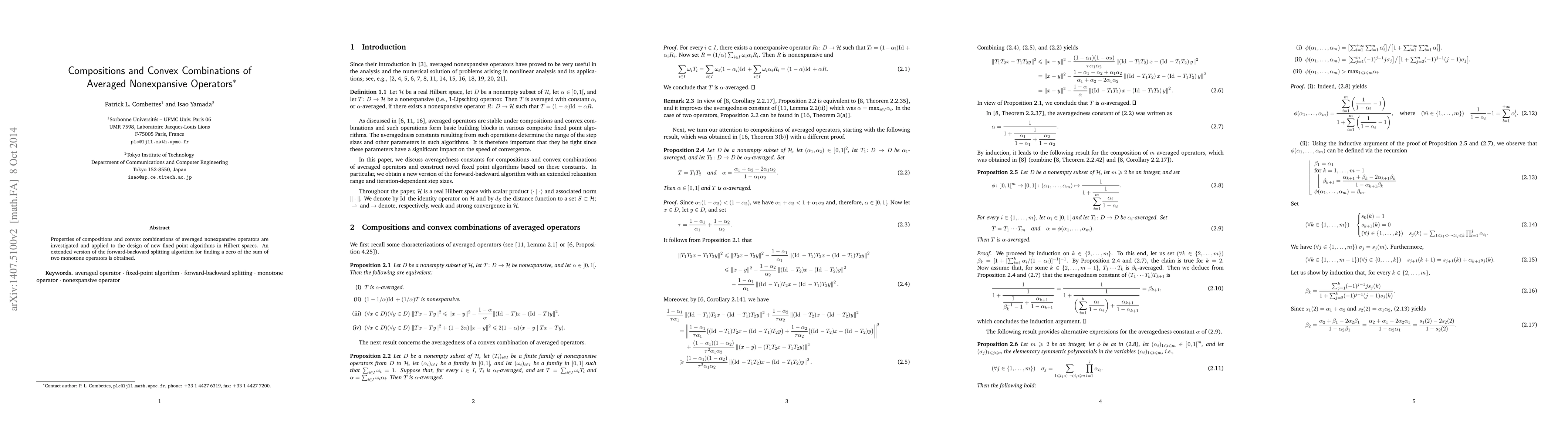 This paper explores the characteristics of compositions and convex combinations of averaged nonexpansive operators, leading to the development of novel fixed point algorithms in Hilbert spaces, including an advanced forward-backward splitting method for identifying zeros of sums of monotone operators.
