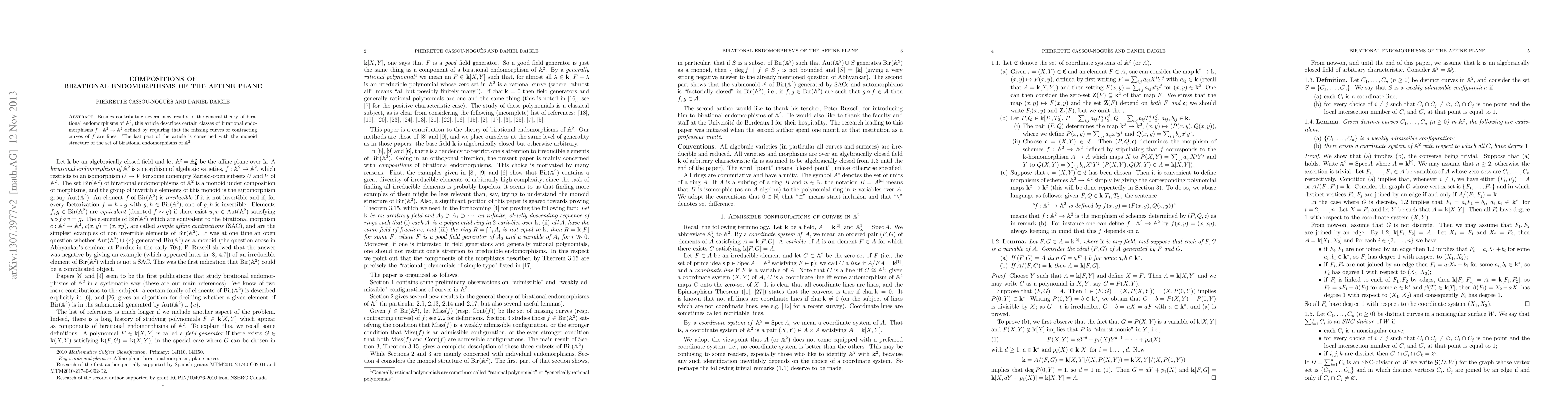 This paper explores birational endomorphisms of the affine plane A^2, focusing on those where missing or contracting curves are lines, and it investigates the monoid structure of the set of such endomorphisms. New results are presented for the general theory of these endomorphisms.