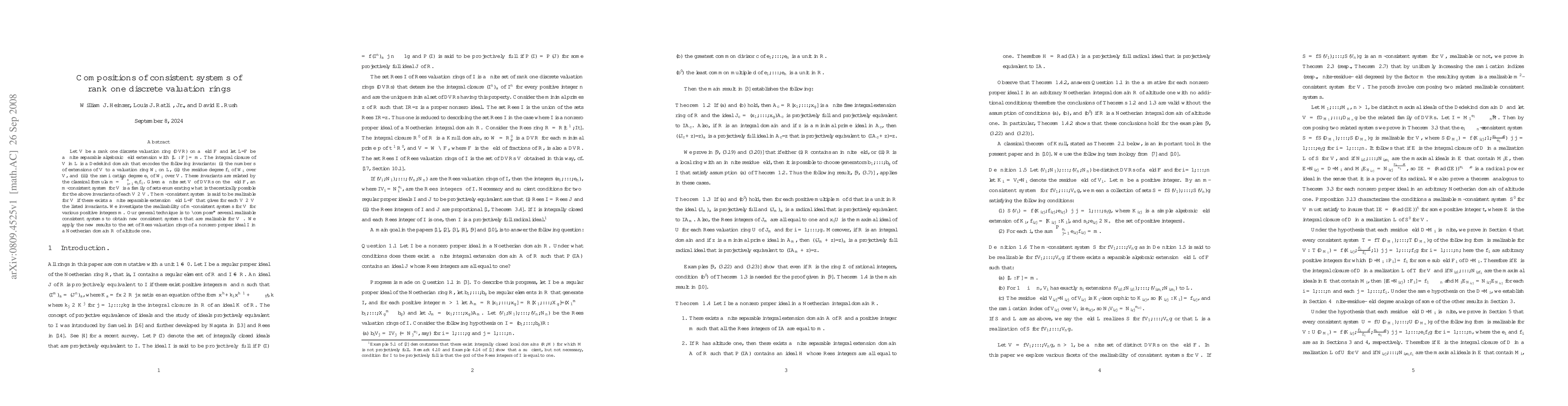This paper explores the composition of consistent systems of rank one discrete valuation rings (DVRs) on a field F, focusing on finite separable algebraic extensions L/F. It investigates the realizability of m-consistent systems, which enumerate possible invariants for extensions of given DVRs, including extension count, residue degree, and ramification degree.