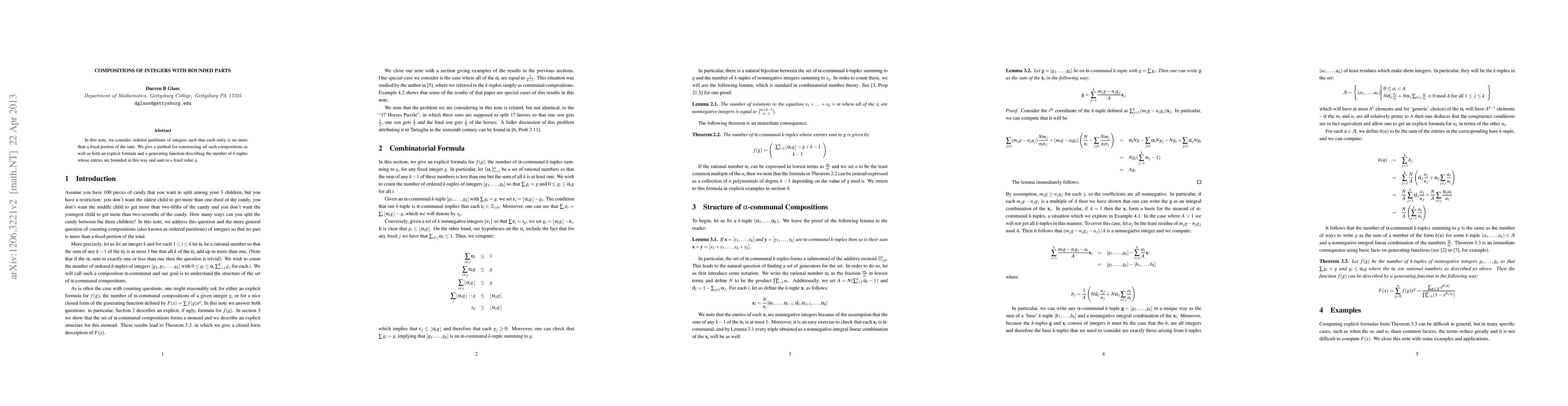 In this note, we consider ordered partitions of integers such that each entry is no more than a fixed portion of the sum. We give a method for constructing all such compositions as well as both an explicit formula and a generating function describing the number of $k$-tuples whose entries are bounded in this way and sum to a fixed value $g$.