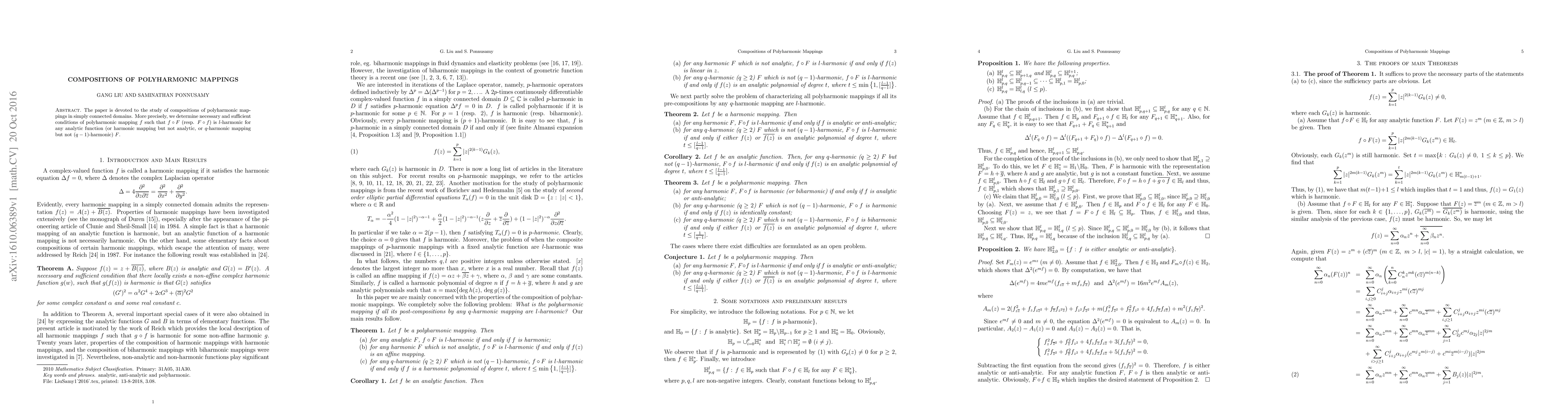 The paper is devoted to the study of compositions of polyharmonic mappings in simply connected domains. More precisely, we determine necessary and sufficient conditions of polyharmonic mapping $f$ such that $f\circ F$ (resp. $F\circ f$) is $l$-harmonic for any analytic function (or harmonic mapping but not analytic, or $q$-harmonic mapping but not $(q-1)$-harmonic) $F$.