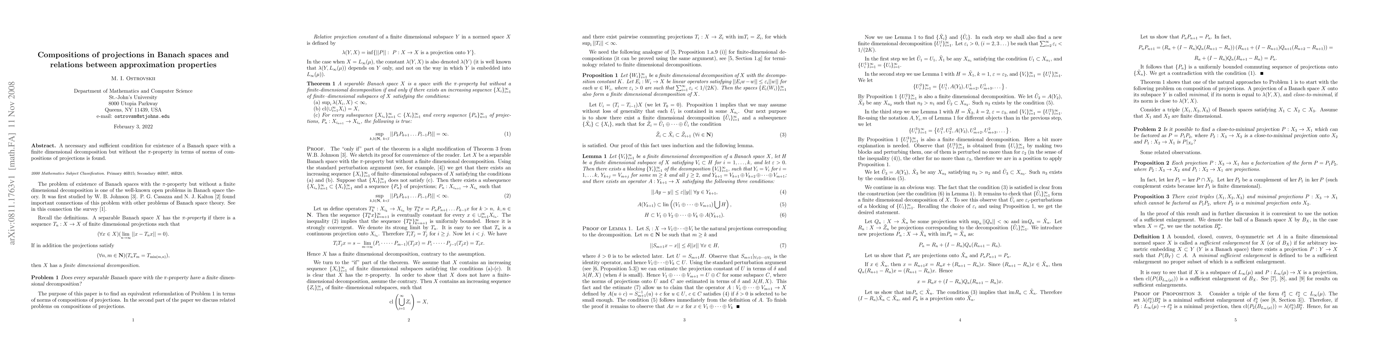 A necessary and sufficient condition for existence of a Banach space with a finite dimensional decomposition but without the $\pi$-property in terms of norms of compositions of projections is found.