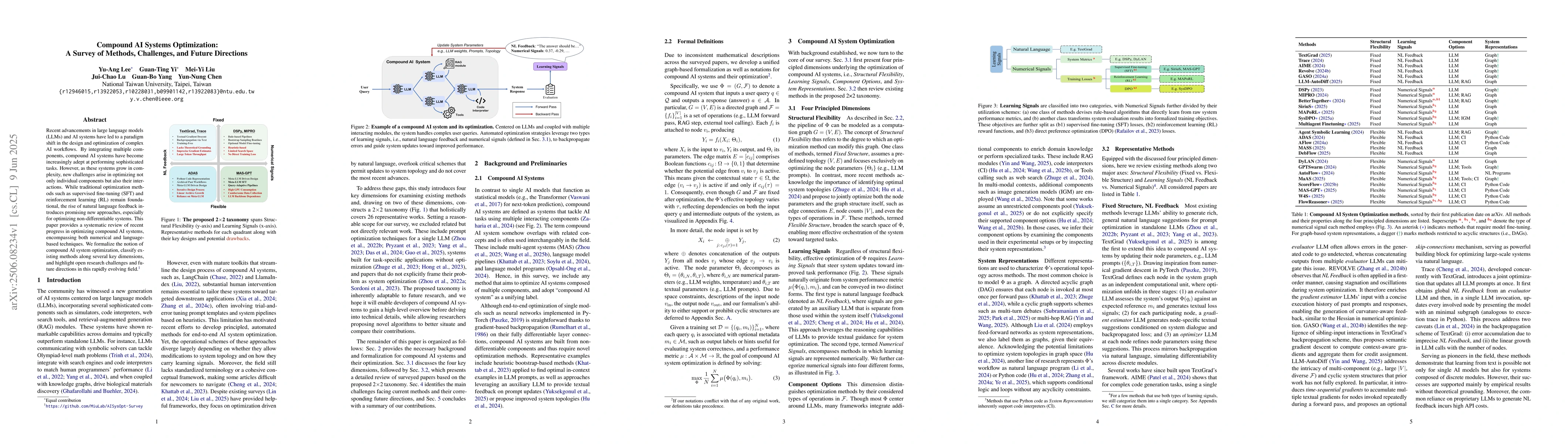 The paper presents a systematic review of methods, challenges, and future directions in optimizing compound AI systems, categorizing existing methods based on their structure and learning signals.
