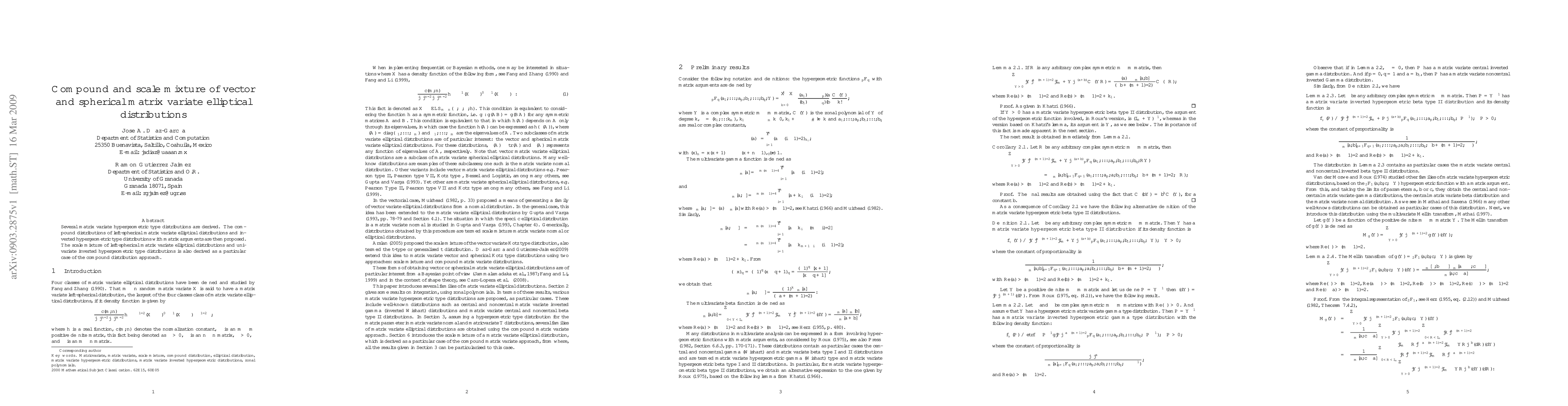 Several matrix variate hypergeometric type distributions are derived. The compound distributions of left-spherical matrix variate elliptical distributions and inverted hypergeometric type distributions with matrix arguments are then proposed. The scale mixture of left-spherical matrix variate elliptical distributions and univariate inverted hypergeometric type distributions is also derived as a particular case of the compound distribution approach.