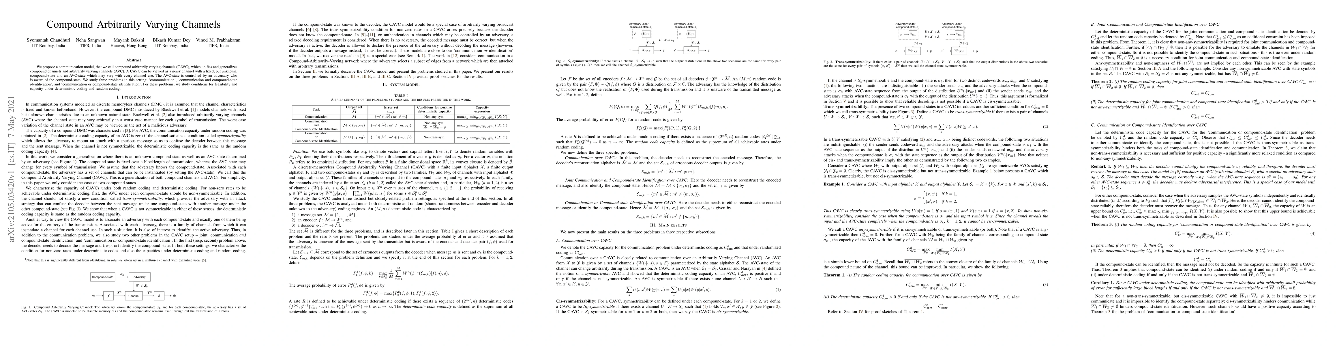 This paper introduces a new communication model called compound arbitrarily varying channels (CAVC), which generalizes compound and arbitrarily varying channels. The study explores three problems: communication, communication with compound-state identification, and communication or compound-state identification, analyzing feasibility and capacity under different coding strategies.
