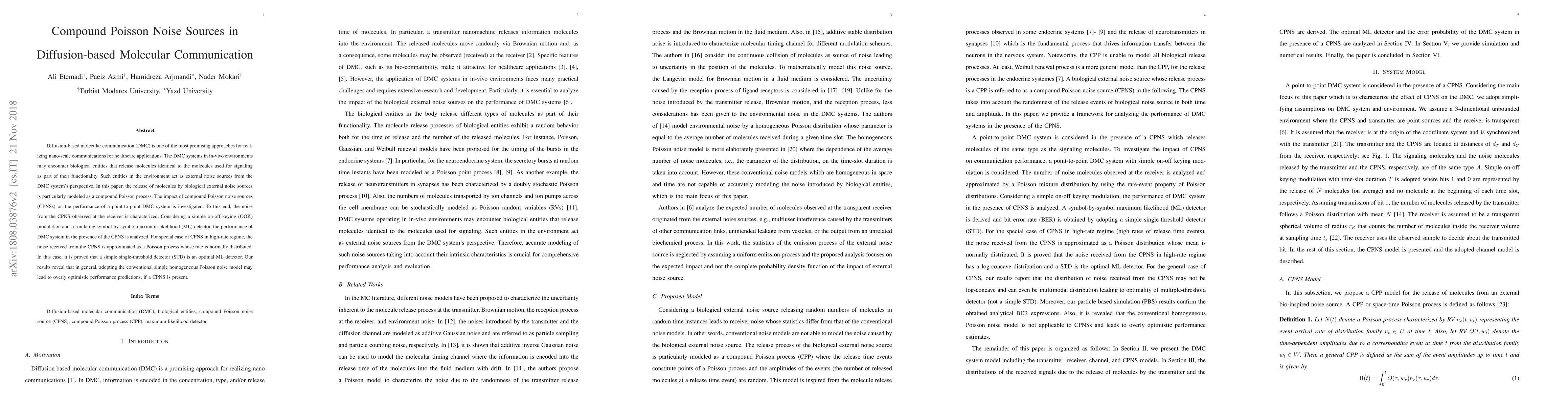 Diffusion-based molecular communication (DMC) is one of the most promising approaches for realizing nano-scale communications for healthcare applications. The DMC systems in in-vivo environments may encounter biological entities that release molecules identical to the molecules used for signaling as part of their functionality. Such entities in the environment act as external noise sources from the DMC system's perspective. In this paper, the release of molecules by biological external noise sources is particularly modeled as a compound Poisson process. The impact of compound Poisson noise sources (CPNSs) on the performance of a point-to-point DMC system is investigated. To this end, the noise from the CPNS observed at the receiver is characterized. Considering a simple on-off keying (OOK) modulation and formulating symbol-by-symbol maximum likelihood (ML) detector, the performance of DMC system in the presence of the CPNS is analyzed. For special case of CPNS in high-rate regime, the noise received from the CPNS is approximated as a Poisson process whose rate is normally distributed. In this case, it is proved that a simple single-threshold detector (STD) is an optimal ML detector. Our results reveal that in general, adopting the conventional simple homogeneous Poisson noise model may lead to overly optimistic performance predictions, if a CPNS is present.