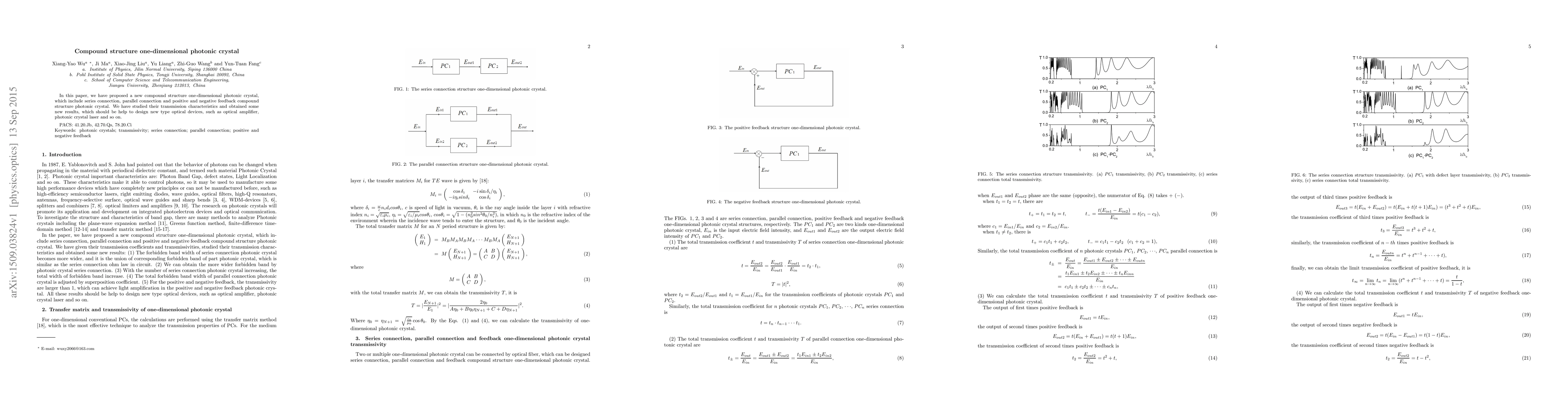This paper proposes a novel compound structure one-dimensional photonic crystal incorporating series, parallel connections, and feedback mechanisms. The study reveals new transmission characteristics, potentially aiding in the design of advanced optical devices like optical amplifiers and photonic crystal lasers.