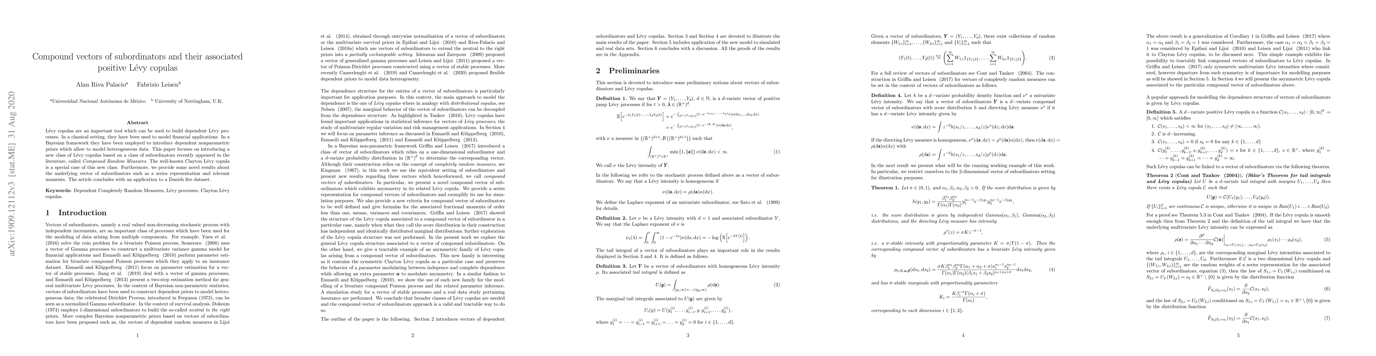 L\'evy copulas are an important tool which can be used to build dependent L\'evy processes. In a classical setting, they have been used to model financial applications. In a Bayesian framework they have been employed to introduce dependent nonparametric priors which allow to model heterogeneous data. This paper focuses on introducing a new class of L\'evy copulas based on a class of subordinators recently appeared in the literature, called \textit{Compound Random Measures}. The well-known Clayton L\'evy copula is a special case of this new class. Furthermore, we provide some novel results about the underlying vector of subordinators such as a series representation and relevant moments. The article concludes with an application to a Danish fire dataset.