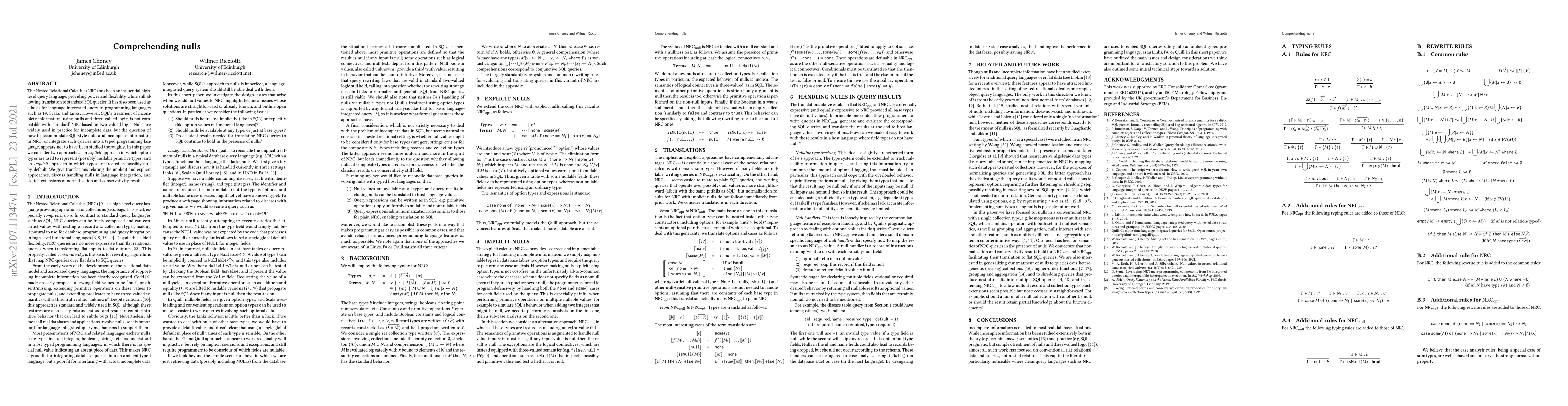 This paper explores how to integrate SQL's nulls and incomplete information into the Nested Relational Calculus (NRC), proposing two approaches: an explicit method using option types and an implicit method treating types as possibly-null by default. It discusses translations between these methods and their implications for language integration.