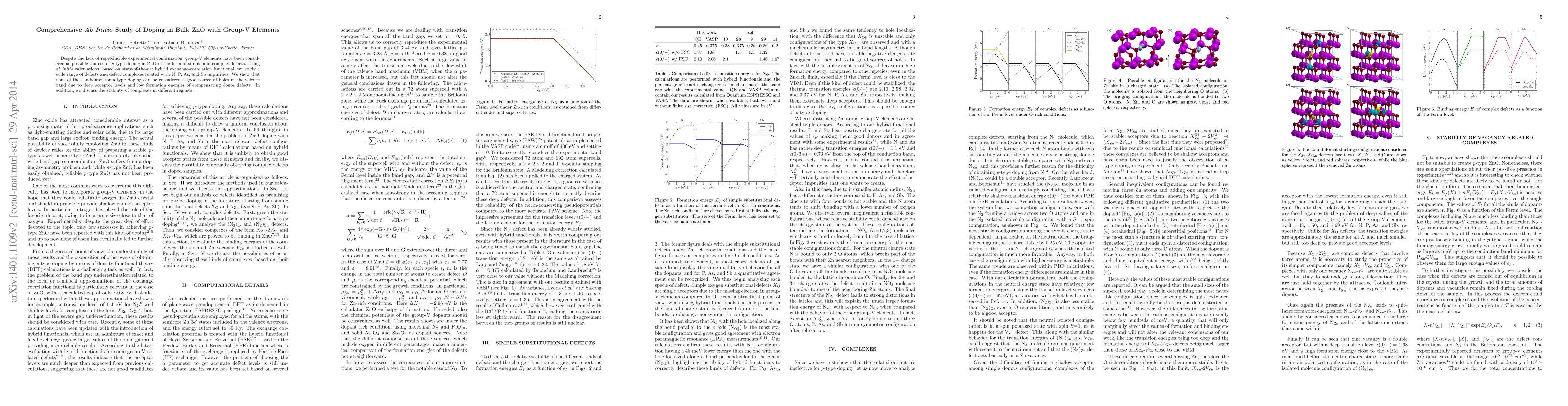This study uses ab initio calculations to investigate the potential of group-V elements (N, P, As, Sb) as p-type dopants in ZnO, finding none to be effective due to deep acceptor levels and low formation energies of compensating donor defects. The research also examines the stability of related defect complexes under various conditions.