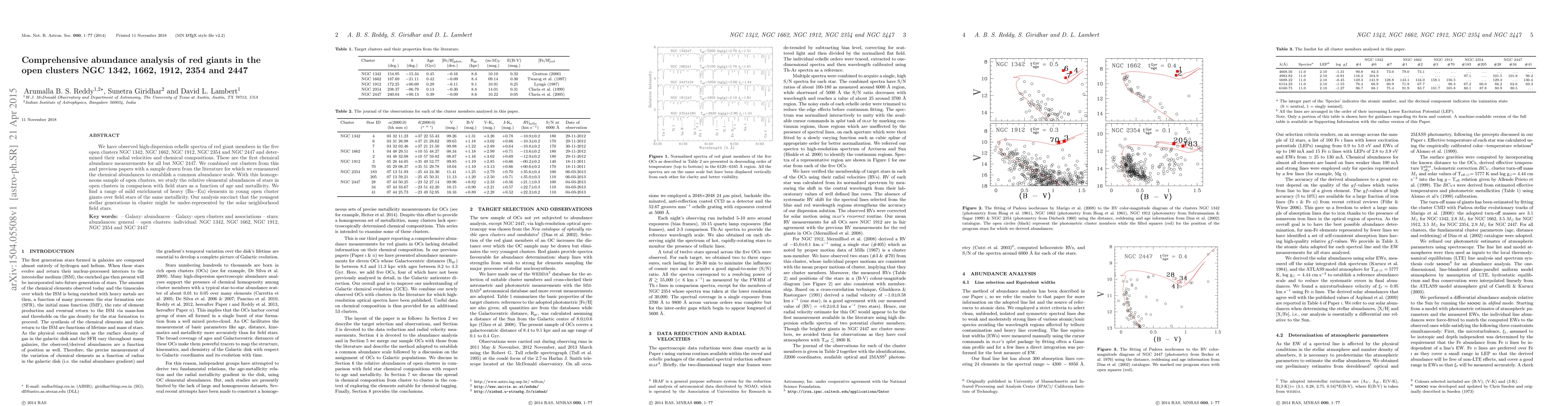 We have observed high-dispersion echelle spectra of red giant members in the five open clusters NGC 1342, NGC 1662, NGC 1912, NGC 2354 and NGC 2447 and determined their radial velocities and chemical compositions. These are the first chemical abundance measurements for all but NGC 2447. We combined our clusters from this and previous papers with a sample drawn from the literature for which we remeasured the chemical abundances to establish a common abundance scale. With this homogeneous sample of open clusters, we study the relative elemental abundances of stars in open clusters in comparison with field stars as a function of age and metallicity. We find a range of mild enrichment of heavy (Ba-Eu) elements in young open cluster giants over field stars of the same metallicity. Our analysis succinct that the youngest stellar generations in cluster might be under-represented by the solar neighbourhood field stars.